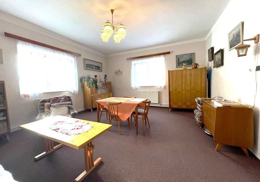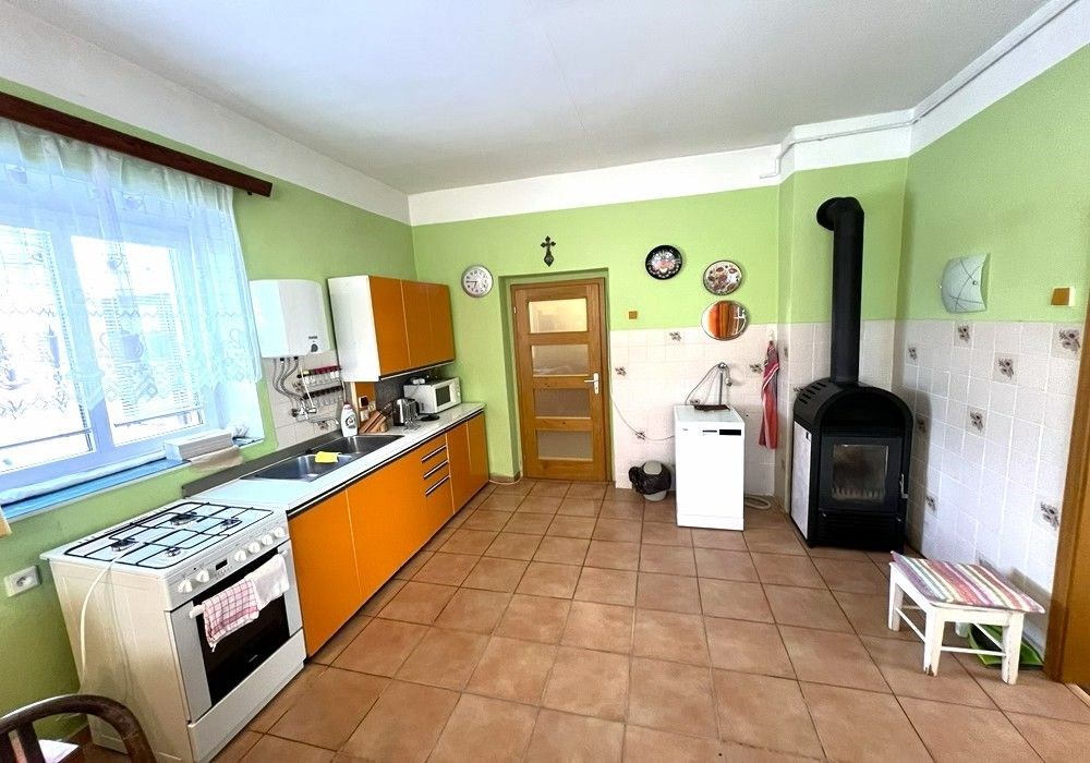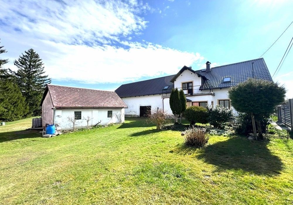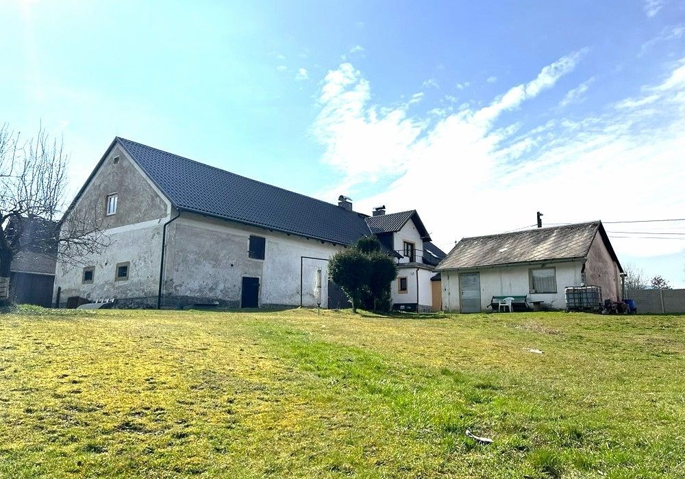 Spoluvlastnický podíl k samostatně stojícímu rodinnému domu (ideální ½ nemovitostí) s kompletním provozním příslušenstvím a vybavením, garáží, vedlejší hospodářskou přístavbou stodolou a navazujícími pozemky o celkové výměře 1.993 m2 v okrajové části obce. Přízemní objekt rodinného domu s částečně využitým obytným podkrovím o dispozici obytných prostor 6+1 (3+1 přízemí, 3+0 podkroví) s příslušenstvím a provozním zázemím. Objekt vesnického RD byl v letech 20012020 modernizován a částečně rekonstruován, adaptován do současného stavu, užíván k seniorskému trvalému bydlení, řádně udržován a spravován, kompletně provozně vybaven, nyní připraven k okamžitému předání a společného užívání, či provedení rekonstrukce objektu ihned po převodu nemovitostí. ENB třída: „G“ průkaz nezpracován. Na objekt RD navazují vlastní pozemky (stavební + zahrada) s vedlejší stavbou garáže, hospodářskou stodolou (přístavba), se zpevněnými venkovními úpravami, zahradou s udržovaným travním porostem a vzrostlými dřevinami s klidovou rekreační, hospodářskou a manipulační plochou a parkovacím zázemím, tvořící samostatný funkční celek původní zemědělské usedlosti. Nemovitosti jsou situovány v rovinatém terénu, navazují na příjezdovou asfaltovou komunikaci se zpevněným vjezdem a vstupem na okraji vesnické zástavby. Nabízené nemovitosti jsou vhodné a využitelné k trvalému rodinnému bydlení nebo komerčnímu využití v okrajové části obce s dostupností základních služeb a infrastruktury (obchod, škola, školka, restaurace…) v cca 1 km vzdálených obcích Klenčí p.Č a Trhanov, cca 10 km od okresního města Domažlice s kompletní vybaveností a veřejnou infrastrukturou. Předností nabízených nemovitostí je velikost a dispozice prostor RD, provozní vybavenost objektu, napojení na inženýrské sítě, možnost okamžitého užívání části nemovitostí1/2, rozloha pozemků zahrady, existence vedlejších staveb a lokace nemovitostí přírodní v okrajové části obce. Dispozice RD: přízemí vstup, veranda, chodba, kuchyně s jídelnou, obývací pokoj, 2x ložnice, koupelna, WC, schodiště, komora, podkroví schodiště, chodba, 3x ložnice, 2x volný půdní prostor. Přístup/příjezd z veřejné zpevněné komunikace (vstup + vjezd), elektřina (220/380 V), napojeno na veřejný vodovod, odkanalizováno do veřejné splaškové kanalizace, napojeno na rozvod plynu a telekomunikační rozvody. Vytápění: centrální plynové + centrální palivové (kotel na tuhá paliva) + lokální palivové (krbová kamna). Zastavěná plocha RD: cca 140 m2, zastavěná plocha celkem: cca 298 m2, zahrada: cca 1.695 m2, plocha pozemků celkem: 1.993 m2.