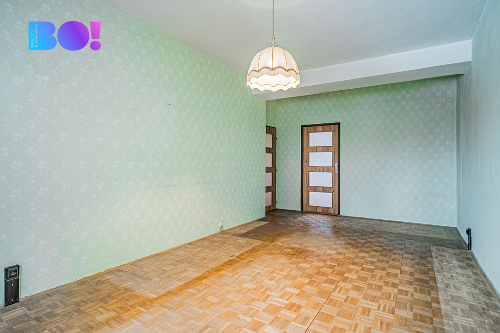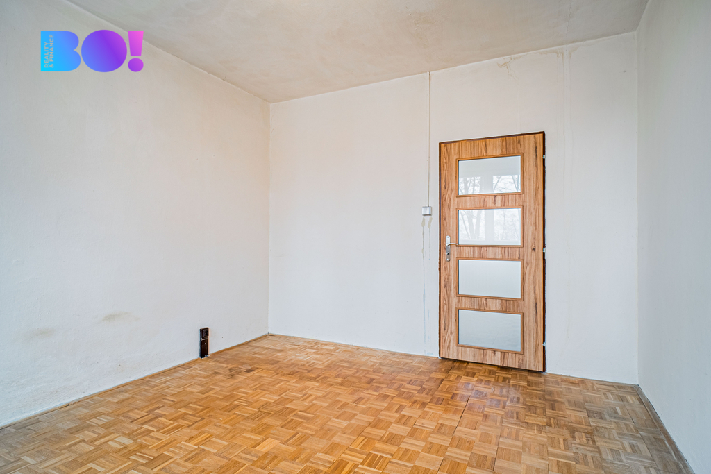 Z chodby se dostanete do obýváku, kde jde cítit potenciál. Představte si novou podlahu, lehký minimalistický nábytek, teplé světlo… a atmosféra je úplně jiná. A pak tu máme ještě jeden samostatný pokoj – ideální na ložnici, dětský pokoj nebo třeba domácí pracovnu, pokud pracujete z domova.