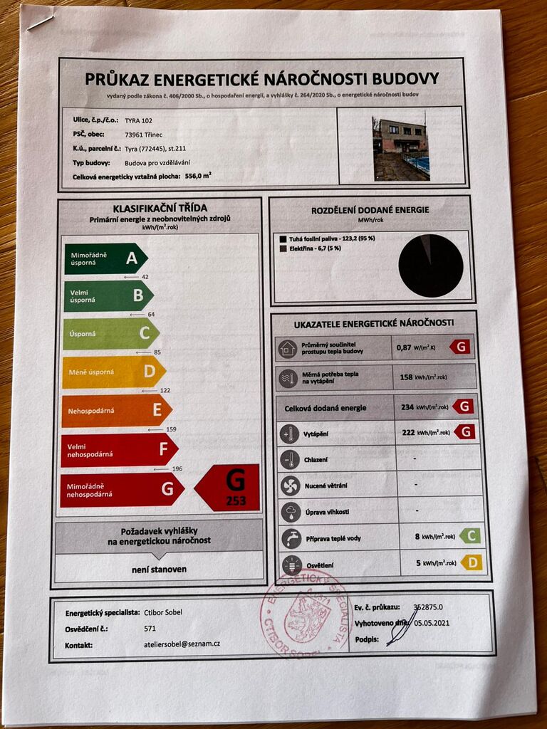 Dvoupatrový zděný objekt se nachází na svažité parcele o celkové výměře 1187m². Zastavěná plocha a nádvoří je 392m², užitné plochy v jednotlivých podlažích jsou cca 250 m2, celkově tedy 484 m2.