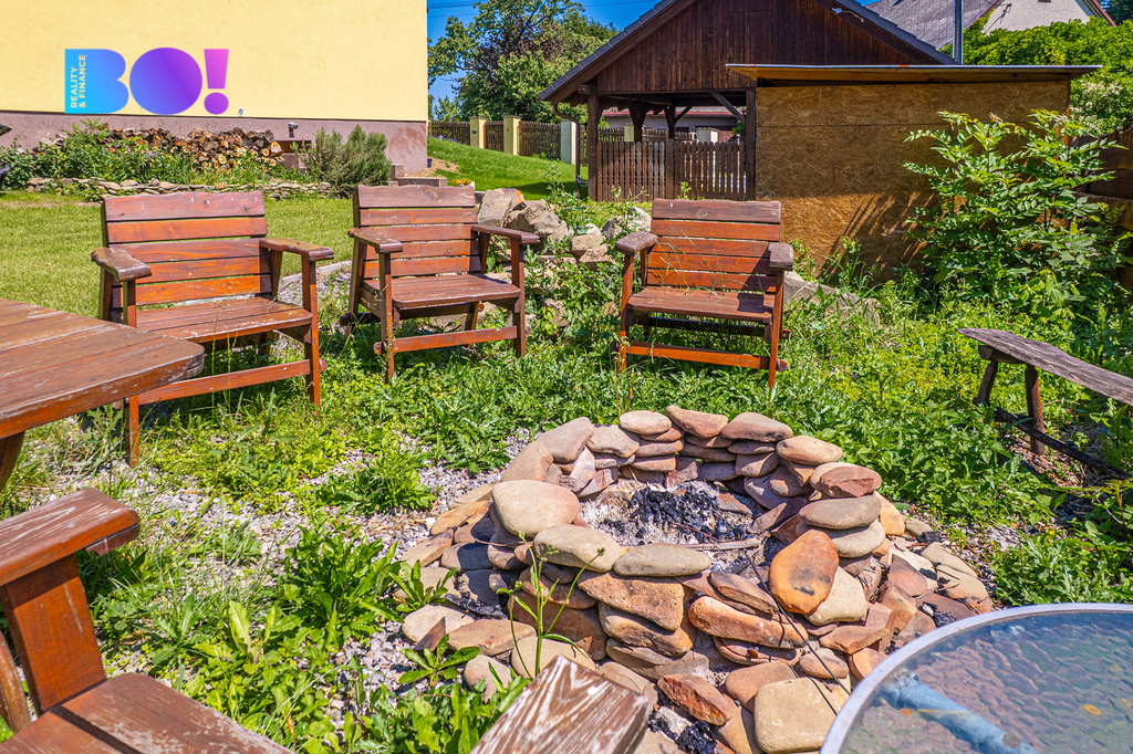 Topení je řešeno kotlem na peletky, dům má i krb – pro teplo i atmosféru. Odpad je řešen žumpou, která byla nově vybudována v březnu 2025. A protože se tu myslelo i na praktičnost, je zde centrální vysavač, který ulehčí každodenní úklid.