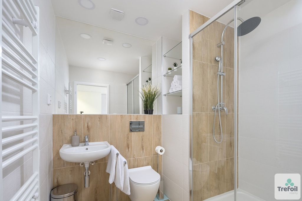 Získáte tak moderní byt 2+kk o velikosti 41,7 m² v kompletně zrekonstruovaném domě s recepcí, fitness centrem a saunou — bez papírování, bez starostí, s možností okamžitého užívání nebo garantovaného výnosu.