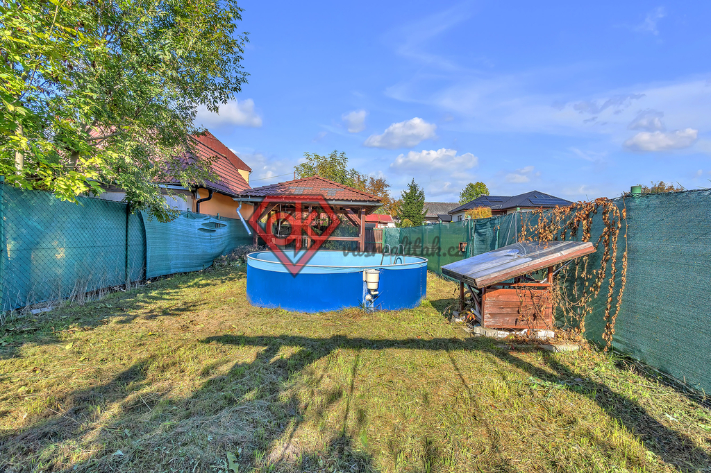 - zahrada s pergolou a bazénem, která je ideální pro letní posezení, grilování nebo odpočinek po práci