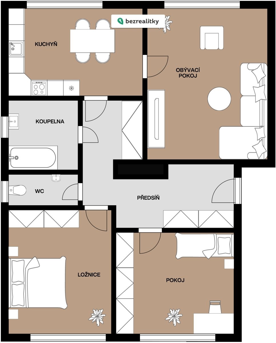 Tento byt představuje příležitost pro zájemce, kteří hledají prostornou dispozici a jsou připraveni investovat do modernizace vytápění a případných dalších úprav. Výsledkem může být komfortní bydlení upravené přesně podle vlastních představ. Tato nemovitost je určena výhradně přímým zájemcům o koupi. Na inzerát můžete také reagovat přímo na webu Bezrealitky.