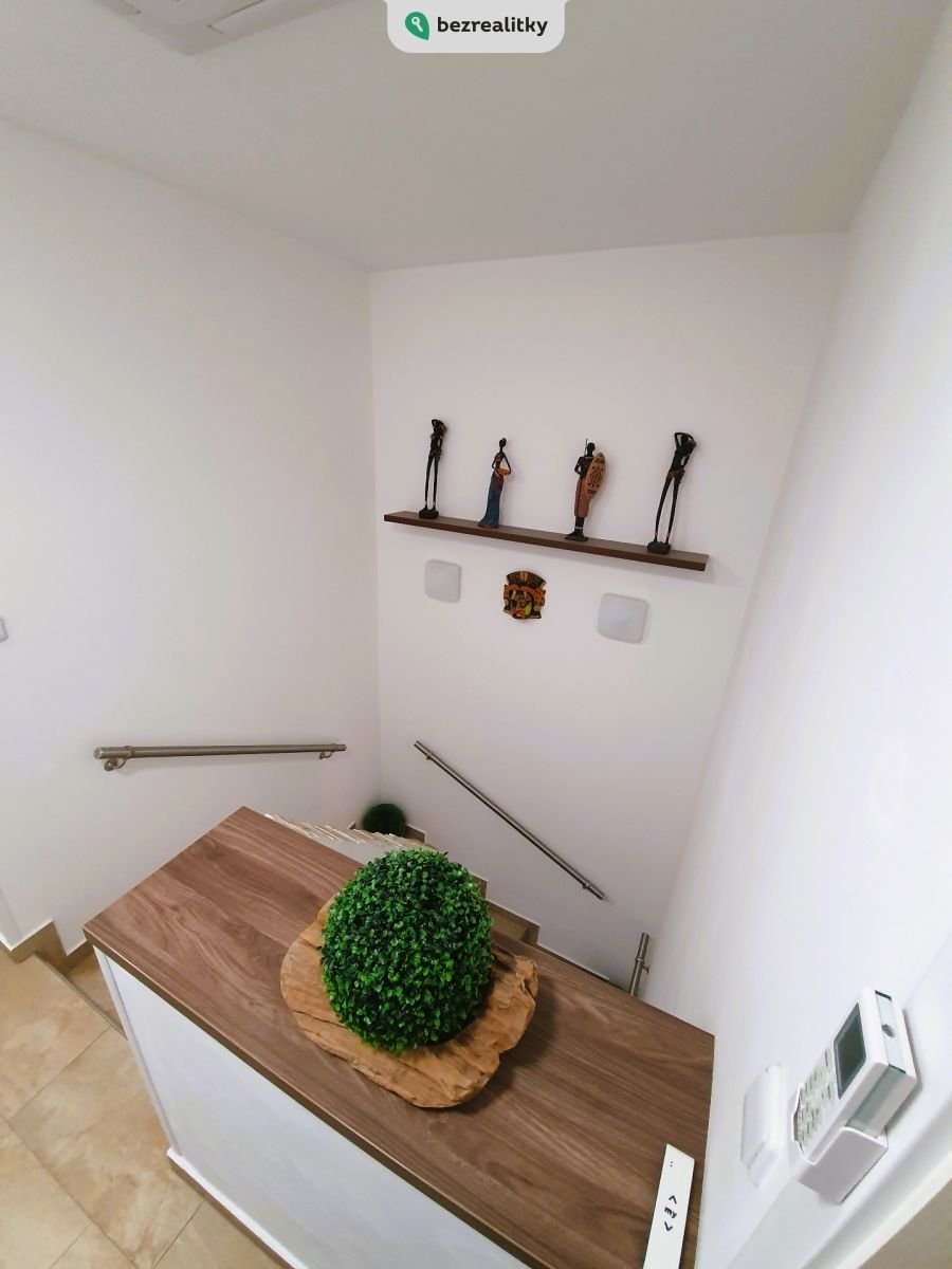 Dispozice a vybavení: Dům je vybaven nábytkem na míru, kuchyňskou linkou s vestavěnými spotřebiči Whirlpool, rekuperací v každé místnosti, klimatizací Sinclair, alarmem Jablotron a kamerovým systémem Hikvision.