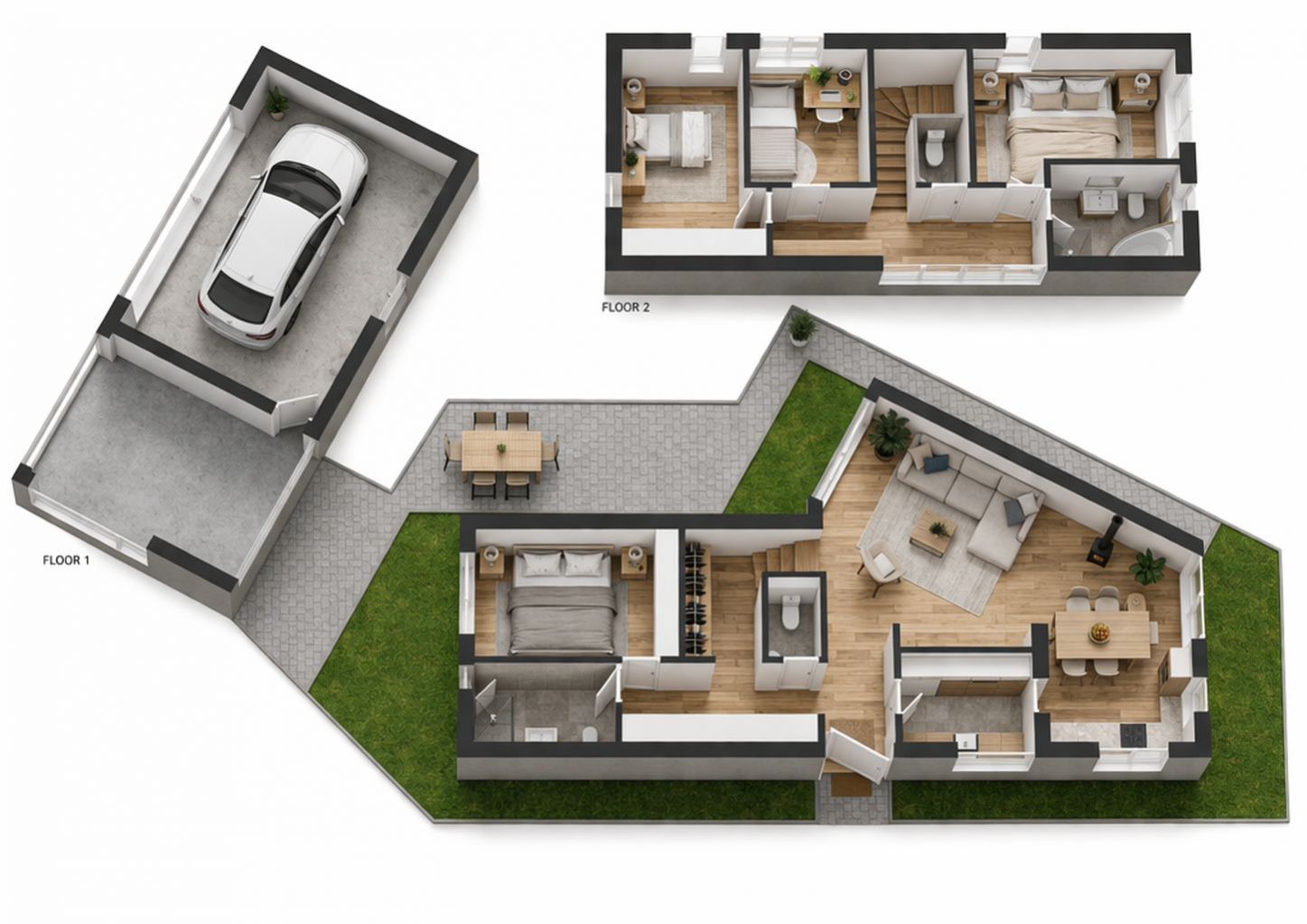 Nabízíme k prodeji moderní rodinný dům o užitné ploše 277 m, který se nachází na pozemku o celkové výměře 738 m. Dům je rozdělen do dvou nadzemních podlaží a nabízí praktické dispoziční řešení s dostatkem prostoru pro komfortní rodinné bydlení. Dominantou je prostorná obytná část s dostatkem denního světla, na kterou navazují další pokoje, ložnice, koupelny i technické zázemí.