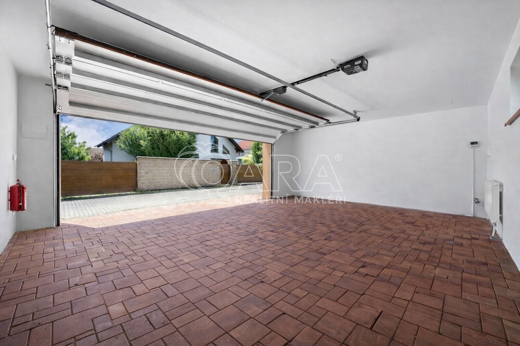 Nemovitost dále nabízí garáž pro dvě parkovací místa, kryté parkovací stání (carport) a venkovní relaxační plochy, které rozšiřují možnosti využití domu. Pozemek o velikosti 738 m² poskytuje dostatek soukromí i prostoru pro zahradu, terasu či další volnočasové aktivity.