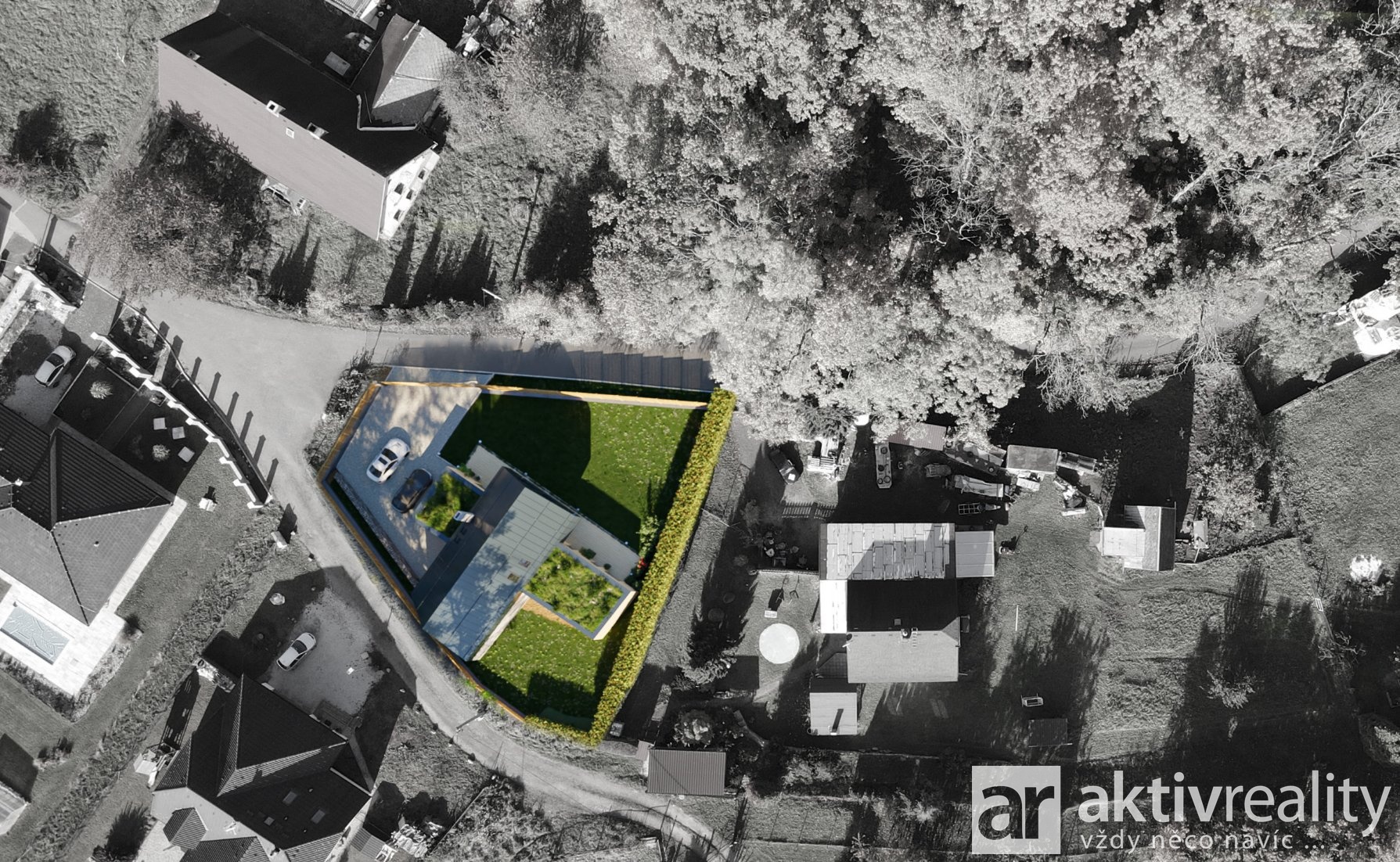 Terén je mírně svažitý, což umožňuje zajímavé architektonické řešení domu.
