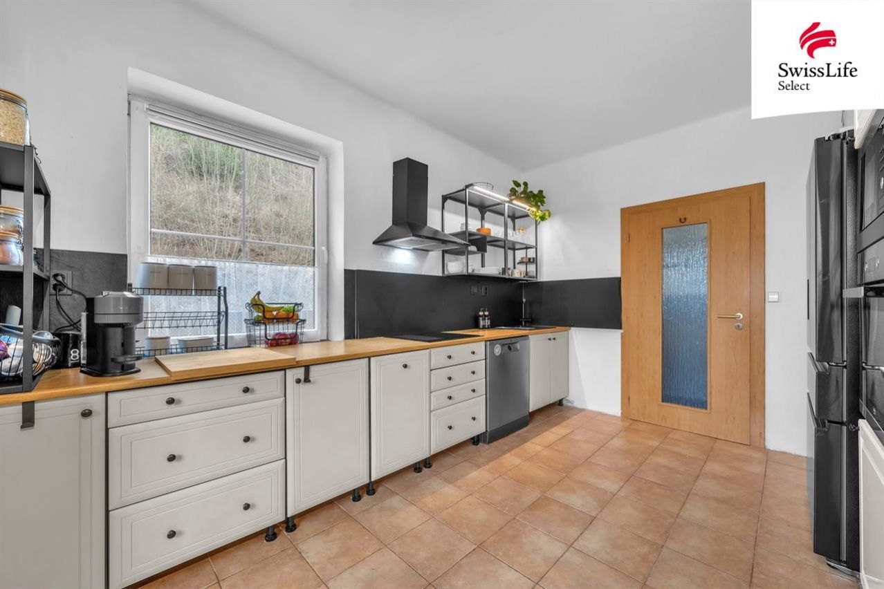 Na hranici pozemku protéká potok (s vysokým břehem bez historických povodňových událostí) Důležité: Nemovitost je standardně pojištěna včetně rizika povodně, pojišťovna s umístěním domu počítá a nijak neomezuje běžné pojistné krytí.