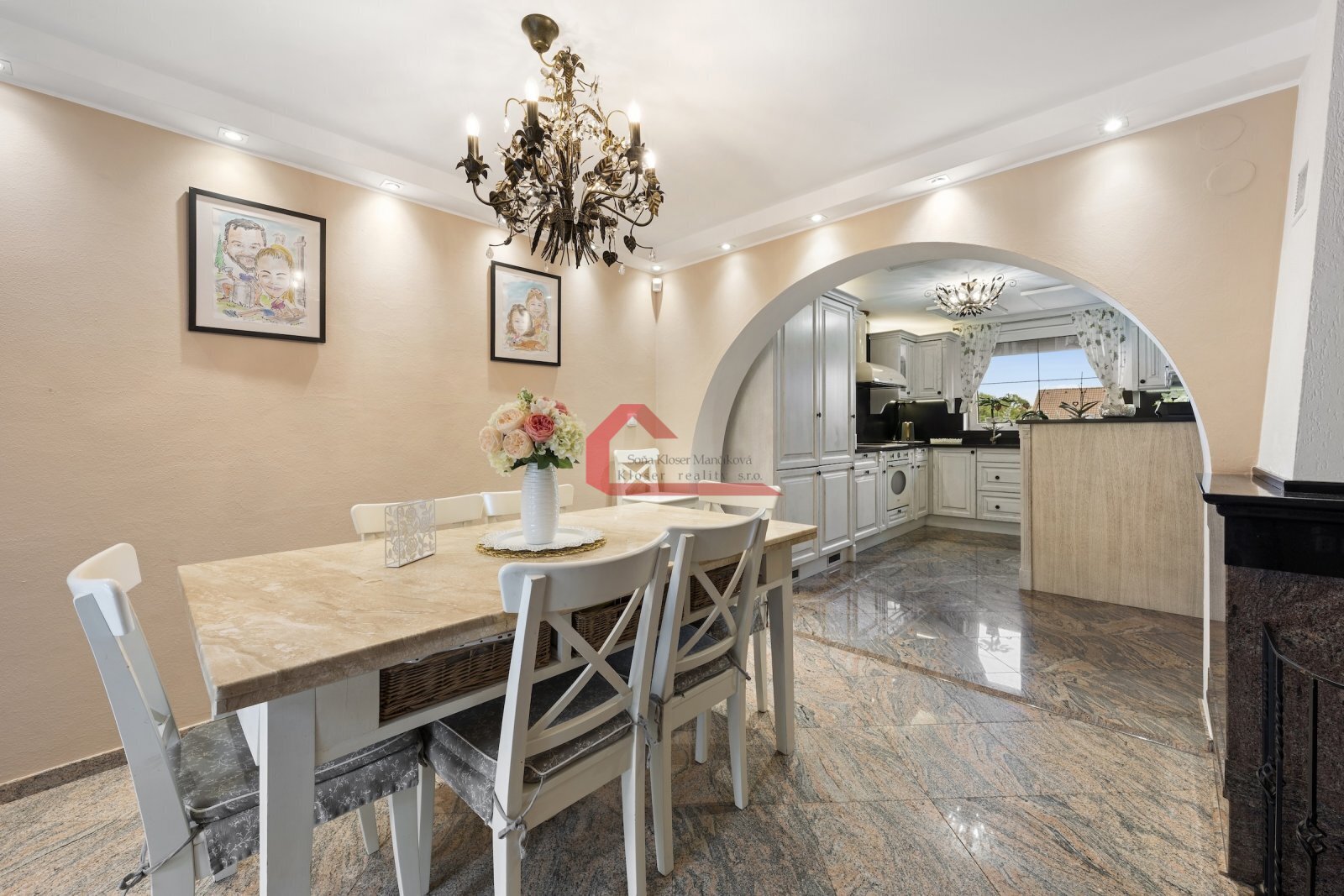 Tento stylový řadový, celopodsklepený rodinný dům o dispozici 5+1 skýtající dostatek místa i pro 6ti člennou rodinu, má naprosto bezproblémové parkování až pro 5 aut. Dům je výjmečný především zpracováním velmi zdařilé rekonstrukce. Na své si zde přijdou obdivovatelé mramorových, žulových a celkově kamenných povrchů a velkorysých prostor.