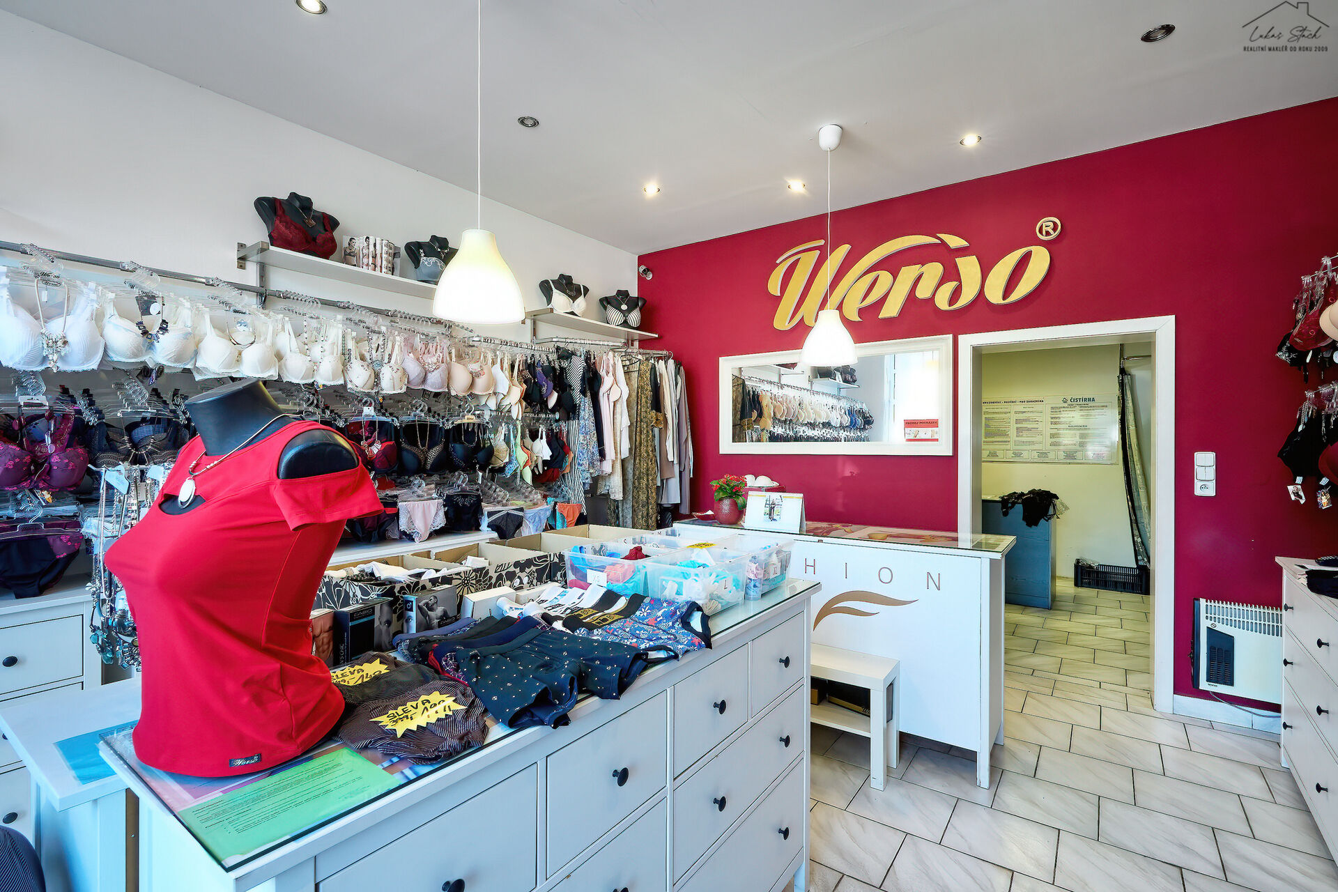 V přízemí se nacházejí tři obchodní jednotky s výlohami do ulice Nádražní. Dva prostory jsou aktuálně volné, třetí je pronajat prodejně spodního prádla.