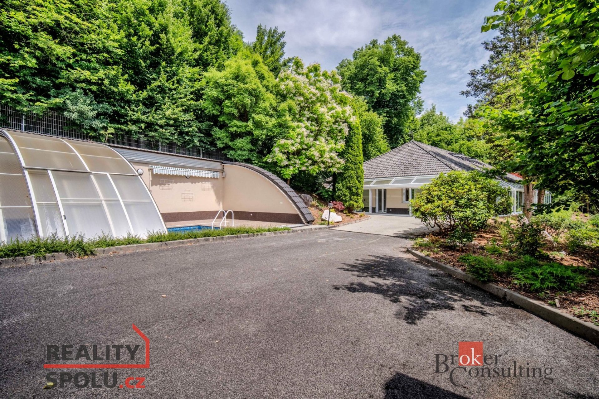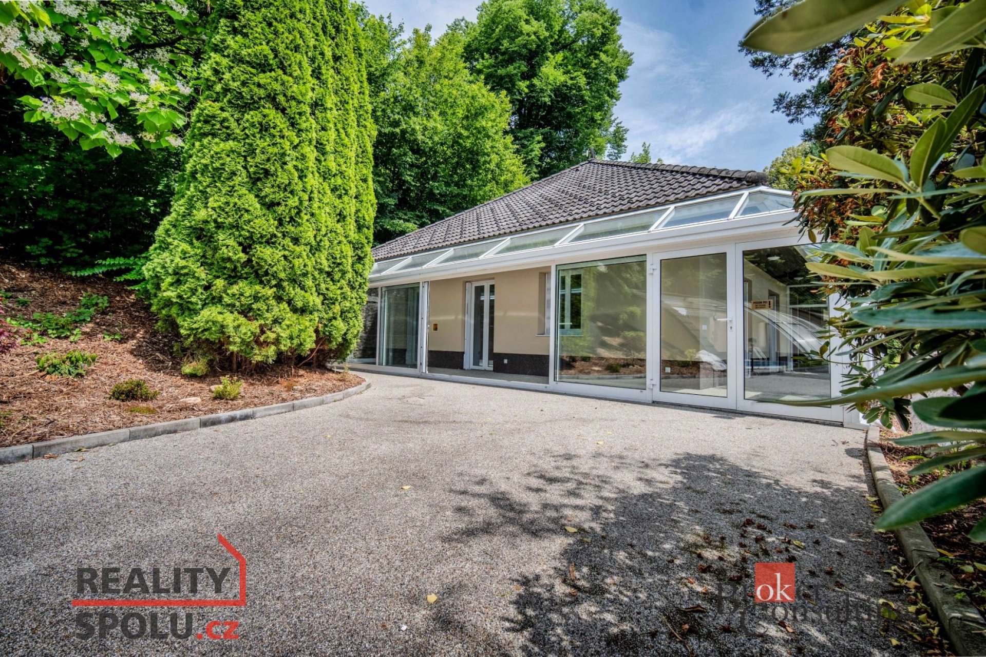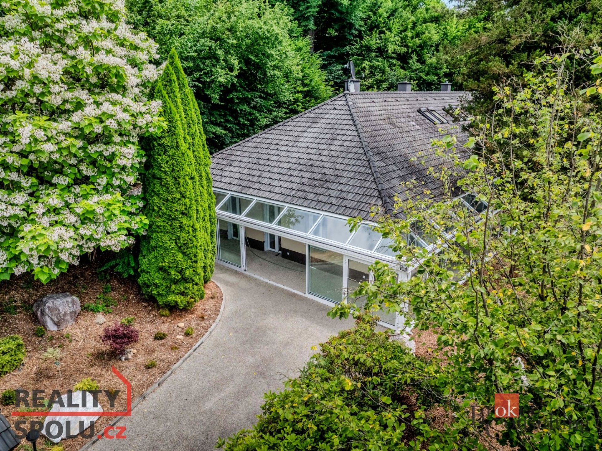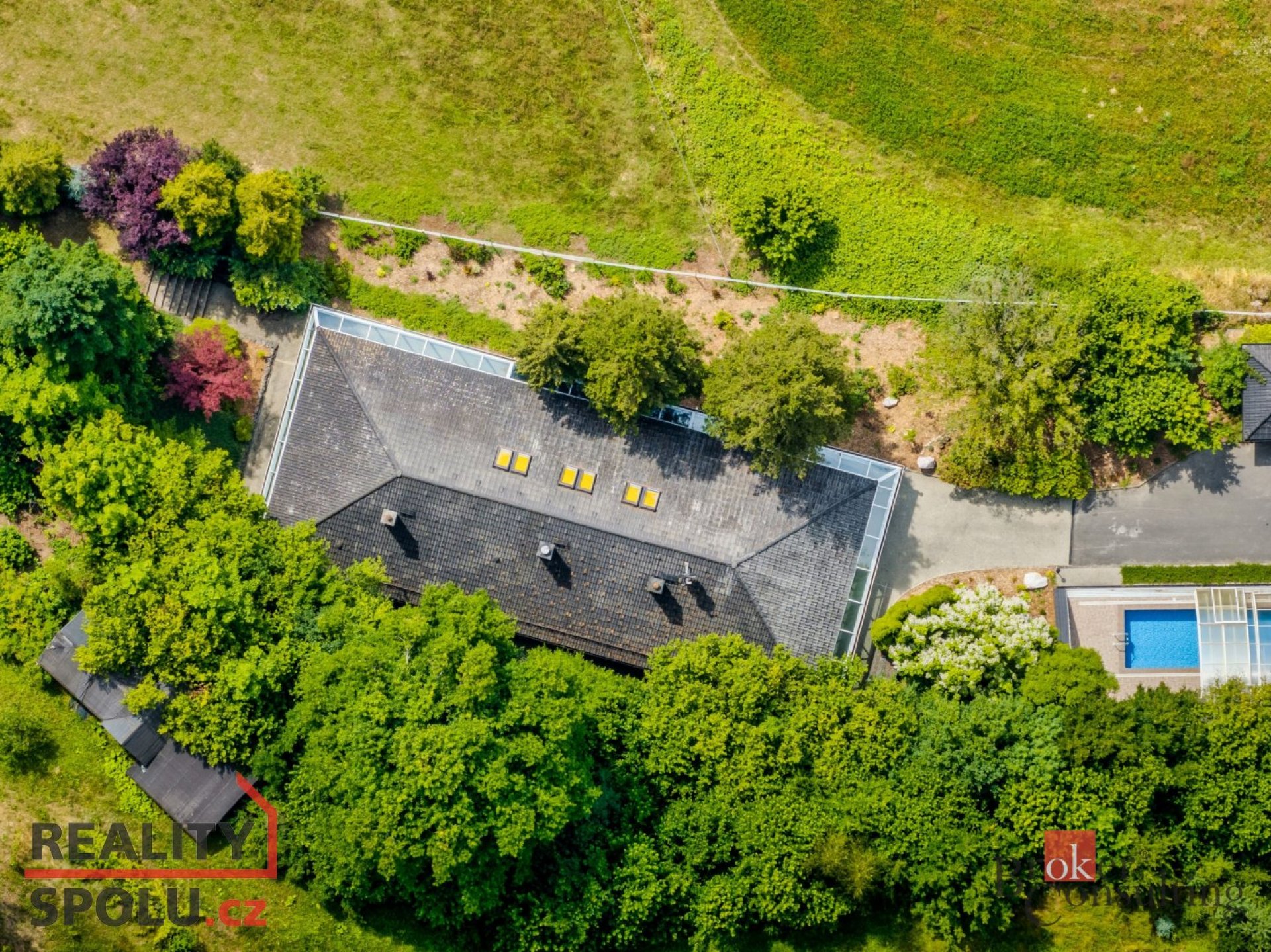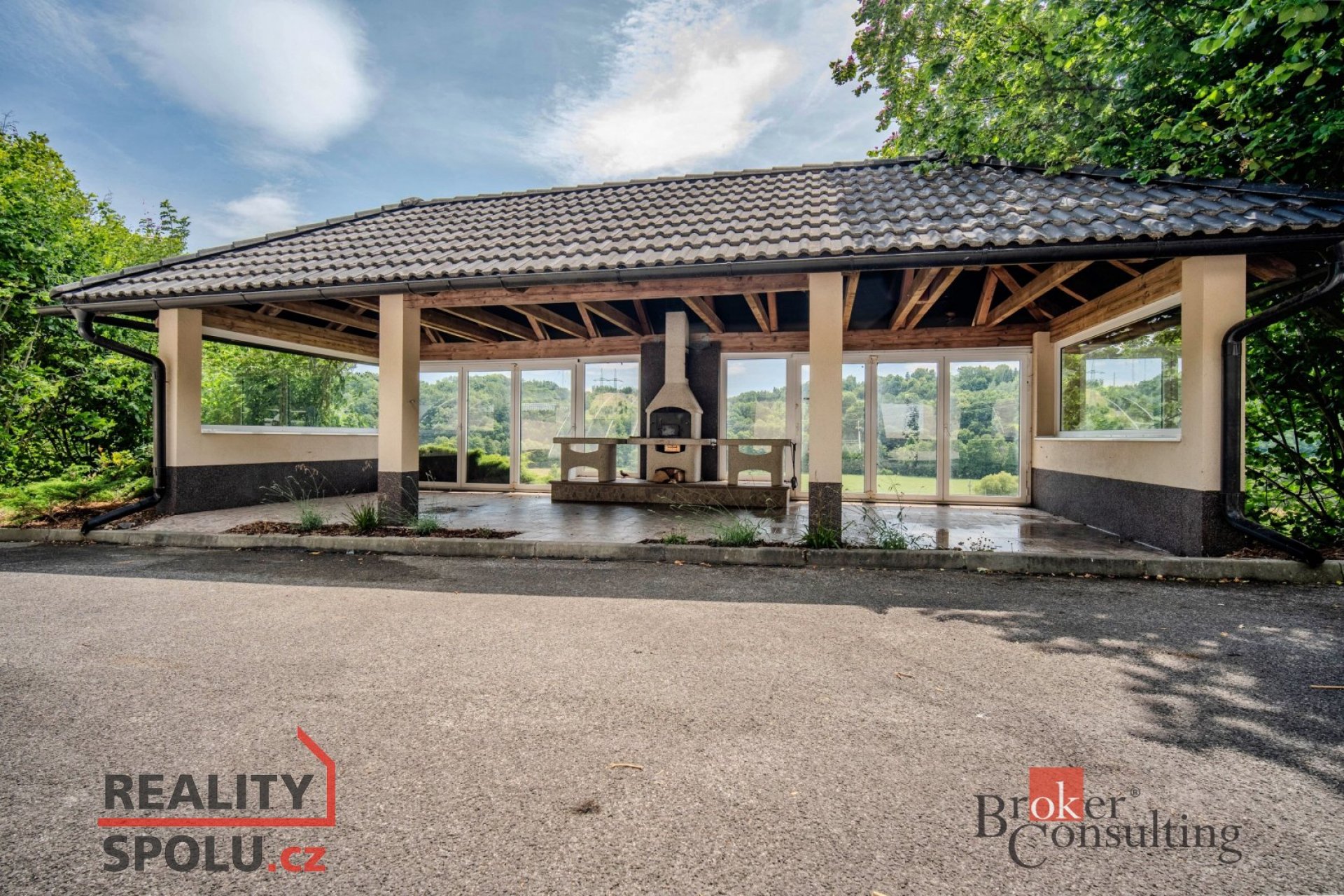 Kolem celého průčelí domu je zimní zahrada z hliníkových profilů a HS portálů. K domu vede vlastní příjezdová cesta ,parkování je vyřešeno pomocí tří parkovacích míst a tří garáží. K domu také patří přístavek s bazénem , vířivkou a sociálním zařízením a pergola s venkovním krbem.