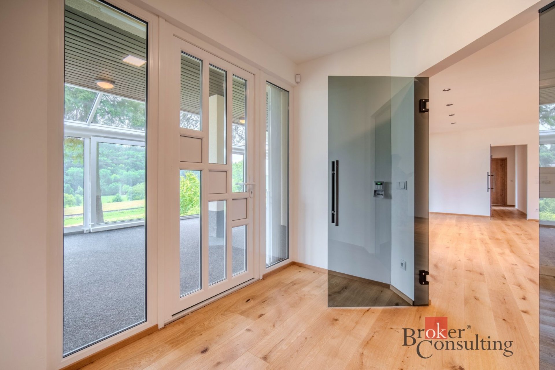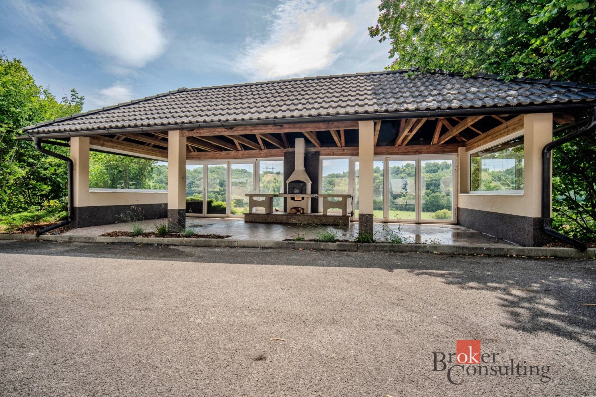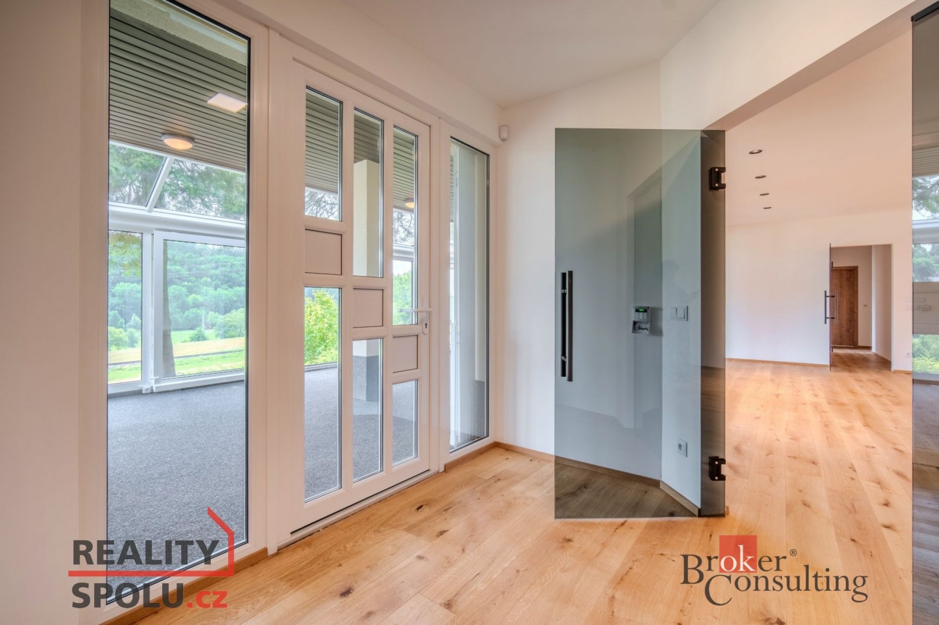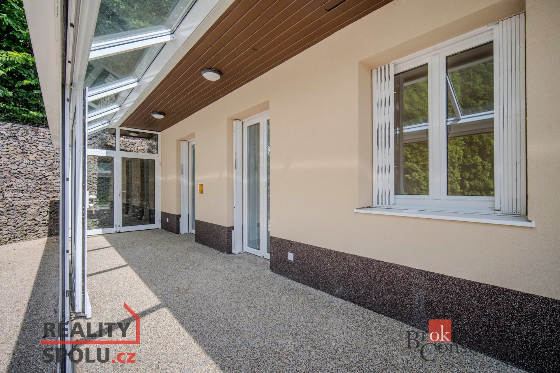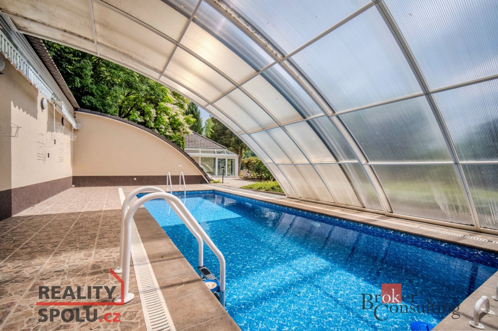 Kolem celého průčelí domu je zimní zahrada z hliníkových profilů a HS portálů. K domu vede vlastní příjezdová cesta ,parkování je vyřešeno pomocí tří parkovacích míst a tří garáží. K domu také patří přístavek s bazénem , vířivkou a sociálním zařízením a pergola s venkovním krbem.