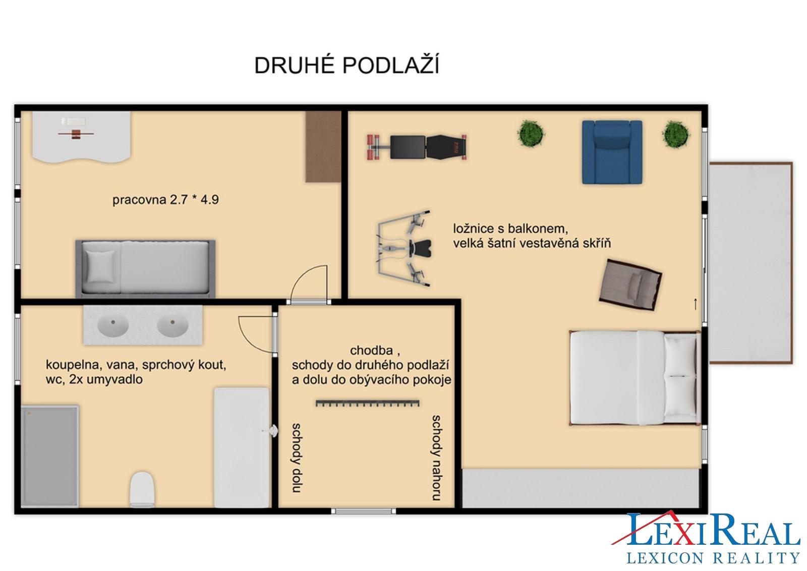 Ložnice s balkonem - šatní vestavěnou skříní a pokoj / pracovna.. .