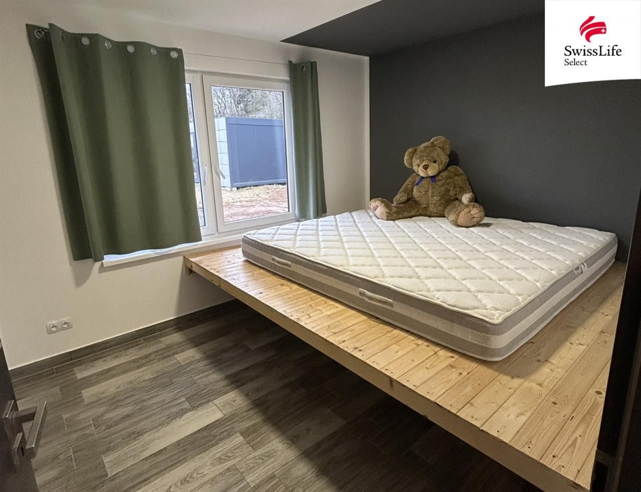 Dům disponuje dvěma koupelnami, přičemž jedna je přímo součástí pokoje, což zajišťuje maximální komfort a soukromí. Prostorný obývací pokoj s terasou a krbem je to co člověk potřebuje.