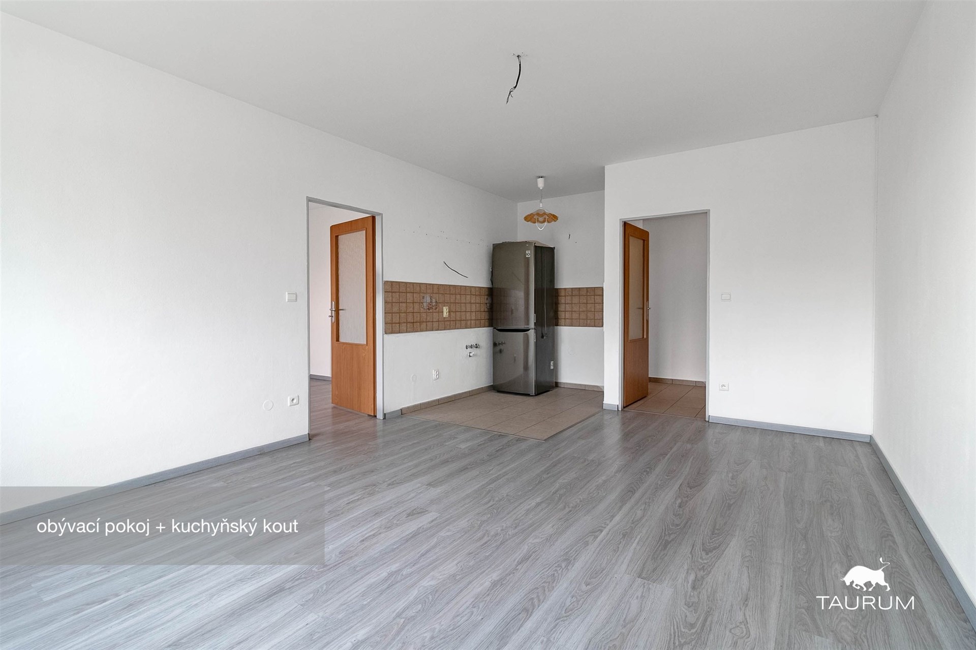 Byt je tvořen předsíní (dlažba), obývacím pokojem (plovoucí podlaha) s kuchyňským koutem (dlažba), ložnicí (plovoucí podlaha) a koupelnou s toaletou (dlažba).