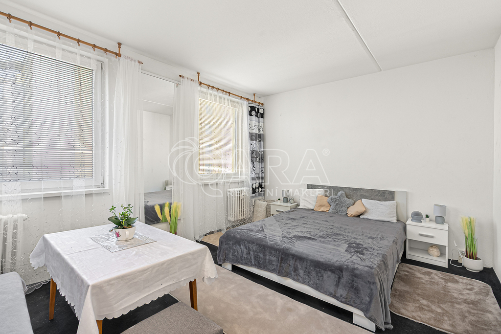 Dominantou bytu je prostorný obývací pokoj, který působí vzdušně a přirozeně propojuje místo pro odpočinek i setkávání s rodinou či přáteli. Na něj navazují dva samostatné pokoje, které lze využít jako ložnici, dětský pokoj nebo pracovnu. Kuchyně je řešena prakticky a nabízí dostatek místa i pro jídelní kout, takže každodenní fungování je pohodlné a bez kompromisů.