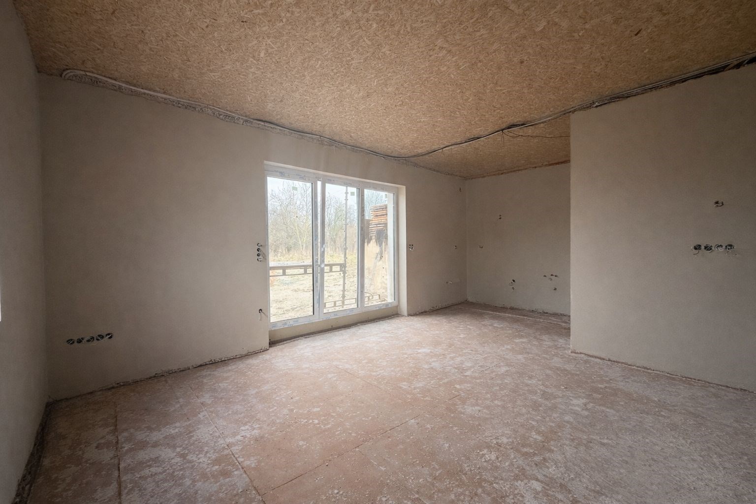 Jednotka bude předána ve stavu hotových omítek, bez podlah, obkladů, sanity a interiérových dveří. Ideální možnost vytvořit si interiér na míru vlastním představám.