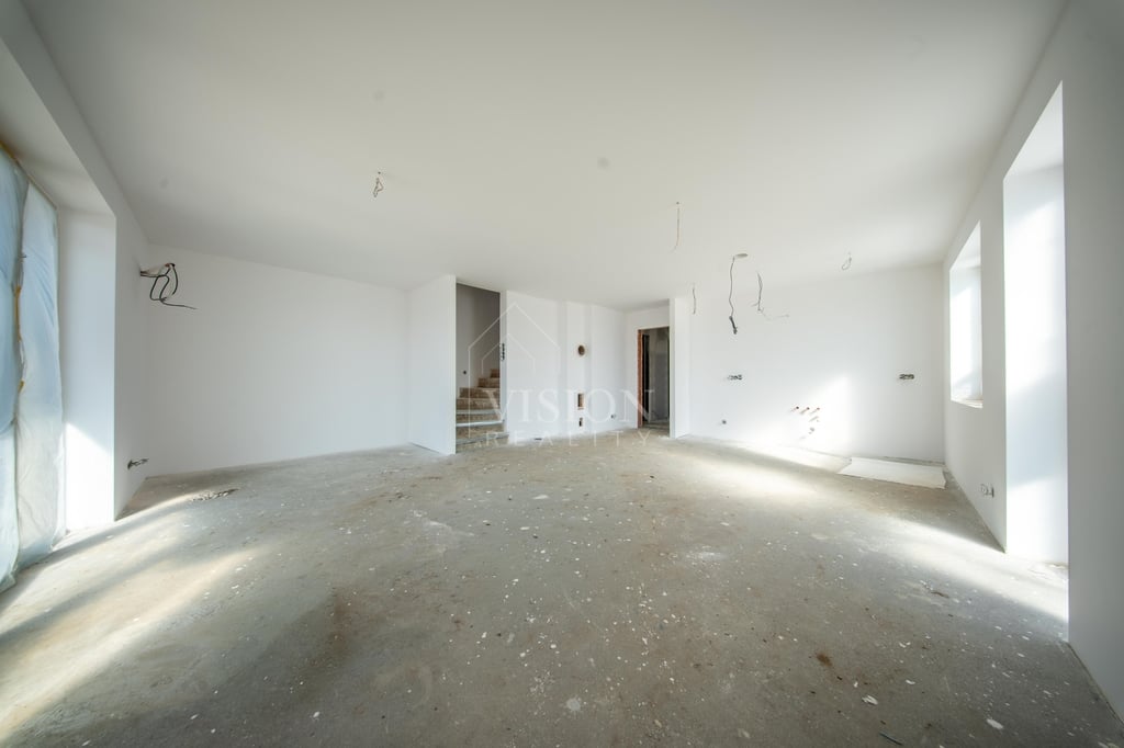 Dominantou domu je velkorysý obývací pokoj s kuchyní, který je díky velkým oknům krásně prosvětlený a přirozeně propojený s terasou a zahradou.