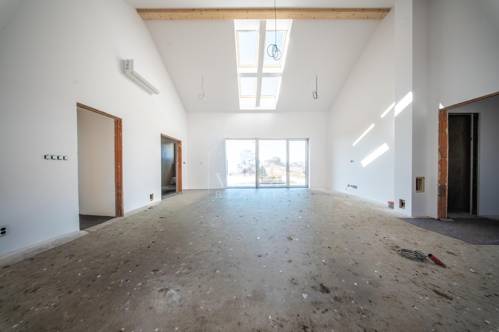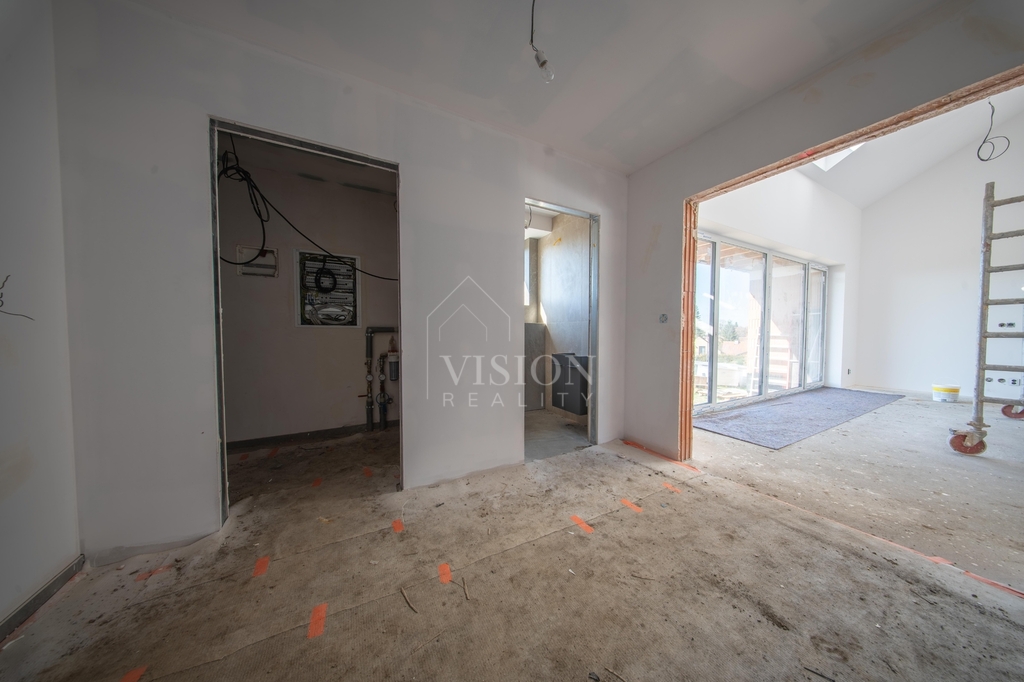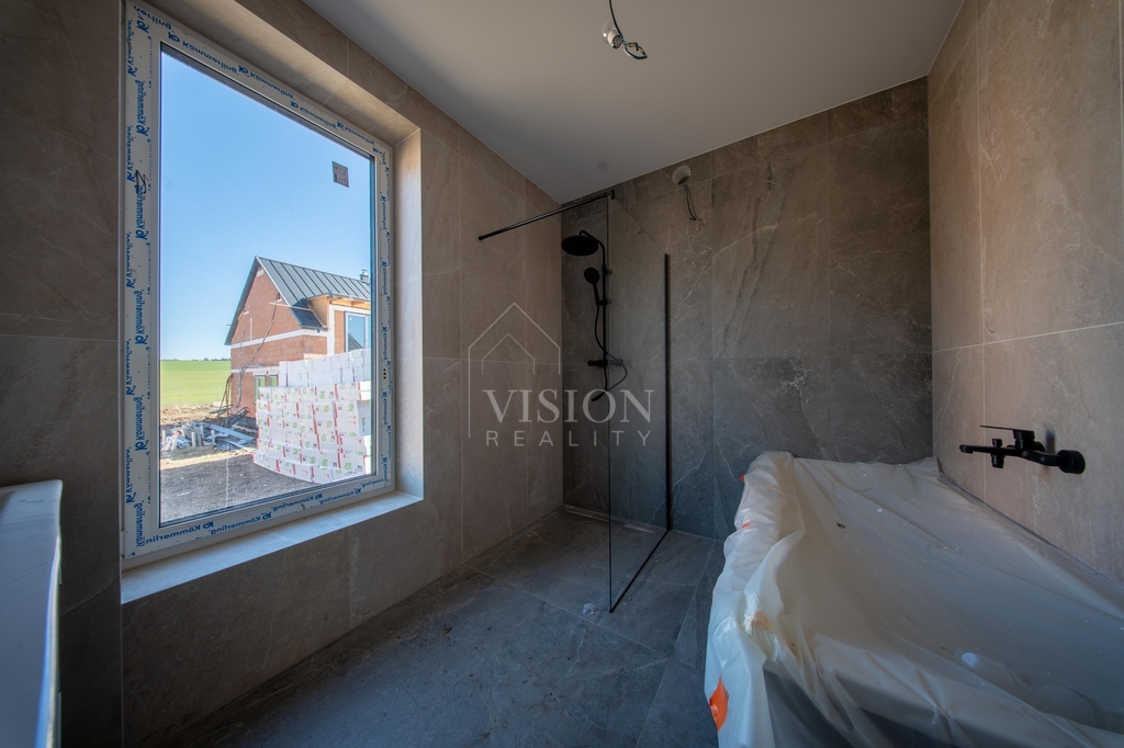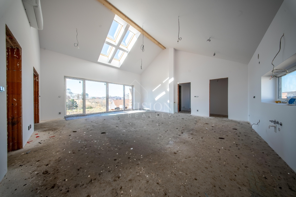 Dominantou domu je velkorysý obývací prostor s kuchyní, který je díky velkým oknům krásně prosvětlený a přirozeně propojený s terasou a zahradou. Pro naprostý komfort je zde ložnice s vlastní koupelnou a šatnou. Dále jsou zde dva samostatné pokoje, které mají taktéž každý svou šatnu.V domě nechybí ani pracovna a další velká koupelna rovněž s luxusní španělskou keramikou s nadčasovým designem. Pro praktičnost domu jsou zde další dvě samostatné toalety a technická místnost.