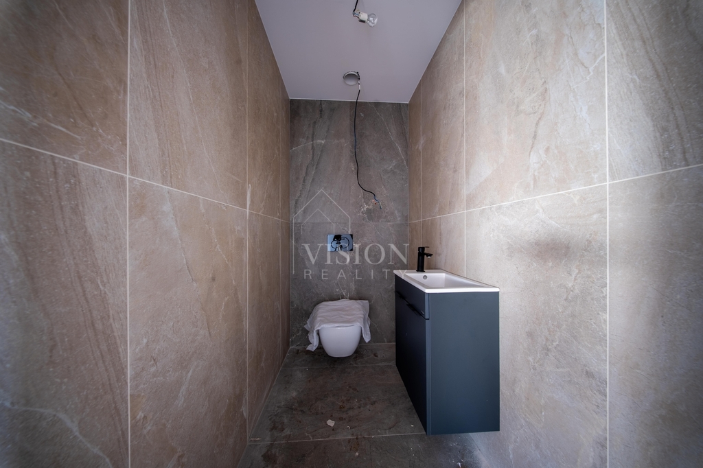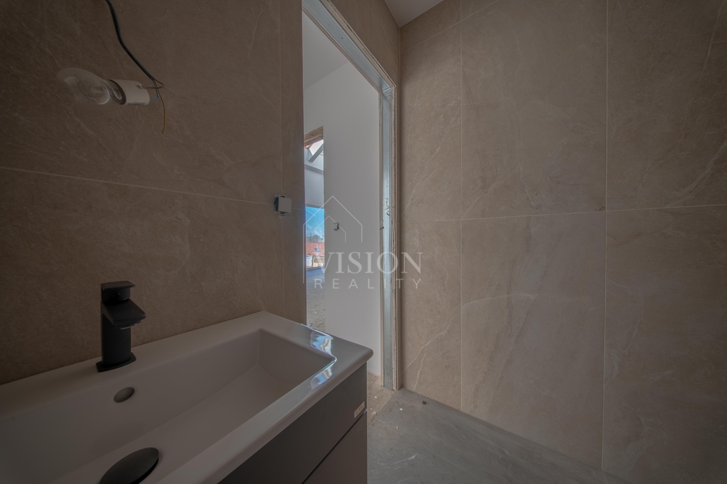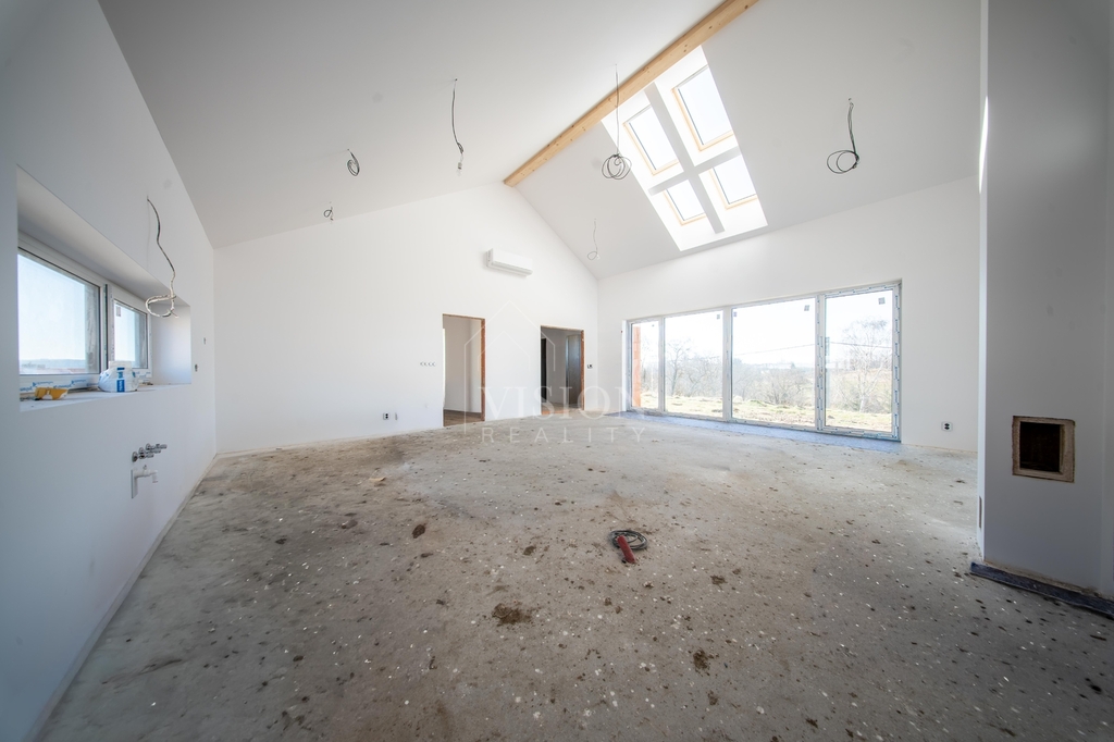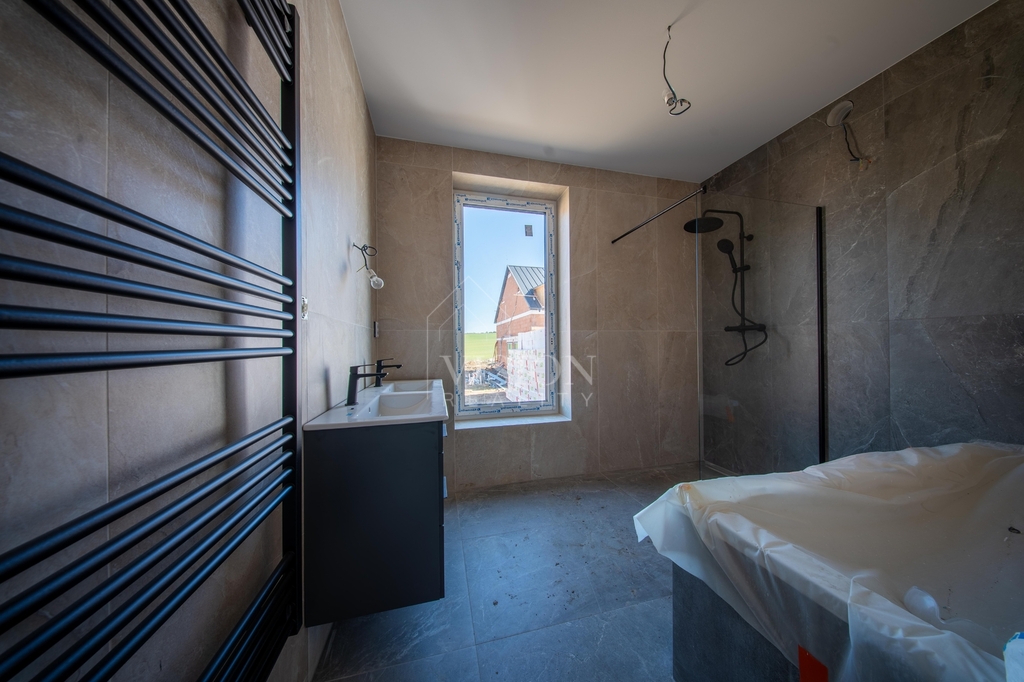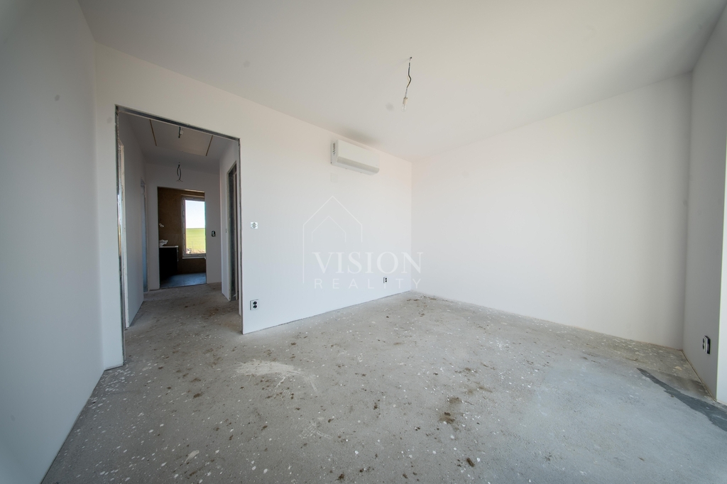 Dominantou domu je velkorysý obývací prostor s kuchyní, který je díky velkým oknům krásně prosvětlený a přirozeně propojený s terasou a zahradou. Pro naprostý komfort je zde ložnice s vlastní koupelnou a šatnou. Dále jsou zde dva samostatné pokoje, které mají taktéž každý svou šatnu.V domě nechybí ani pracovna a další velká koupelna rovněž s luxusní španělskou keramikou s nadčasovým designem. Pro praktičnost domu jsou zde další dvě samostatné toalety a technická místnost.