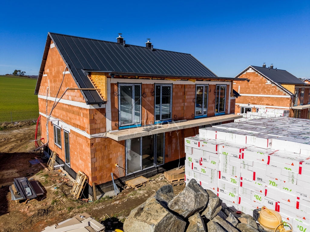 Dům je navíc připraven i na další moderní technologie, jako jsou krbová kamna, klimatizace, předokenní žaluzie, wallbox pro elektromobil nebo fotovoltaická elektrárna, která může ještě více snížit náklady na energie.