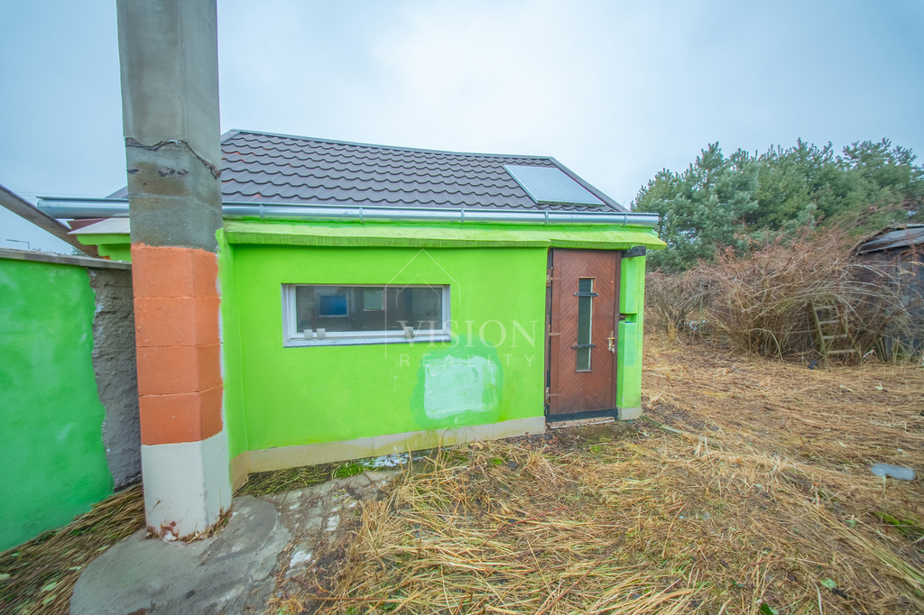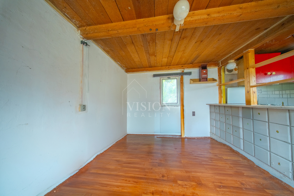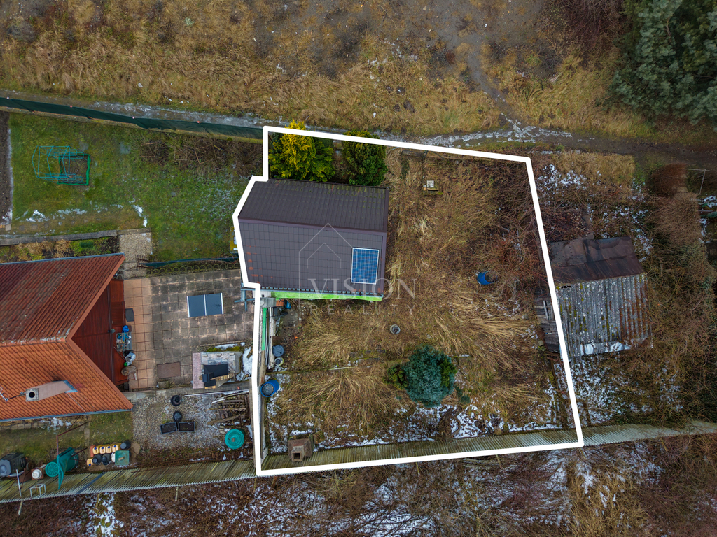 Na pozemku se nachází zděná chata o rozloze 18 m² s půdou. Elektřinu si snadno zajistíte pomocí velké baterie s možností dobíjení solárním panelem nebo elektrocentrálou. Vytápění zajistí kamna která lze napojit na současný komín. Chata je k rekonstrukci, případně se zde nabízí možnost její nahrazení obytným přívěsem nebo karavanem.