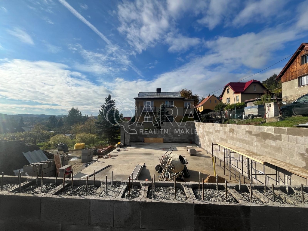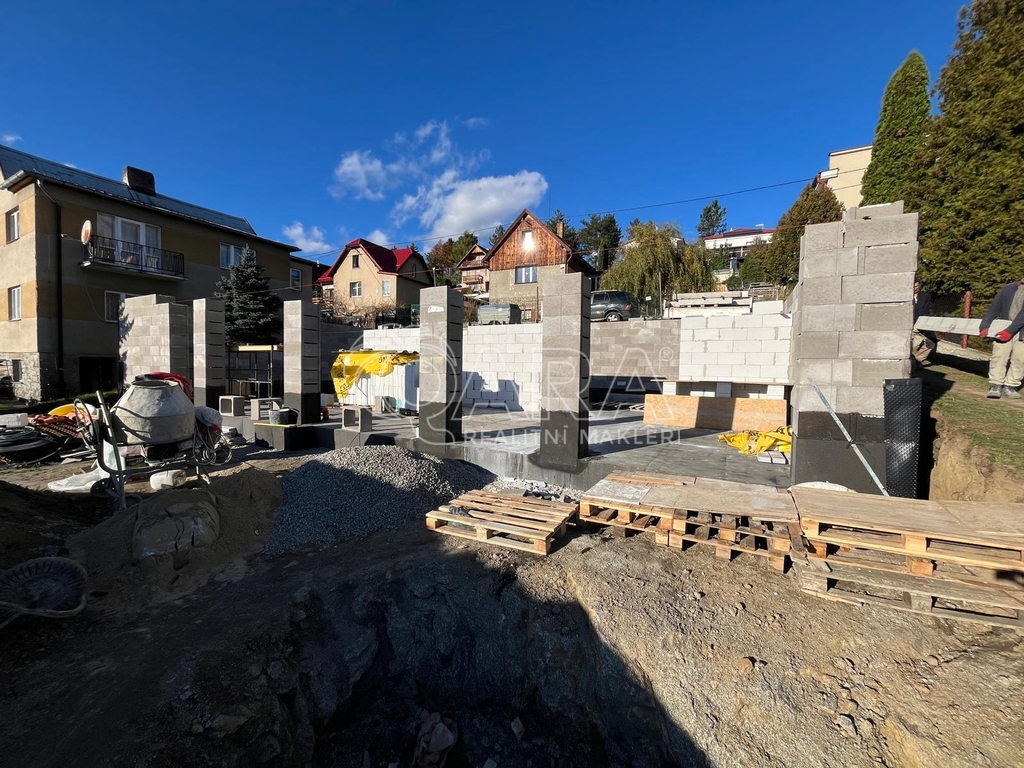 Částečná hrubá stavba suterénu (1. PP) – připraveno k pokračování výstavby.