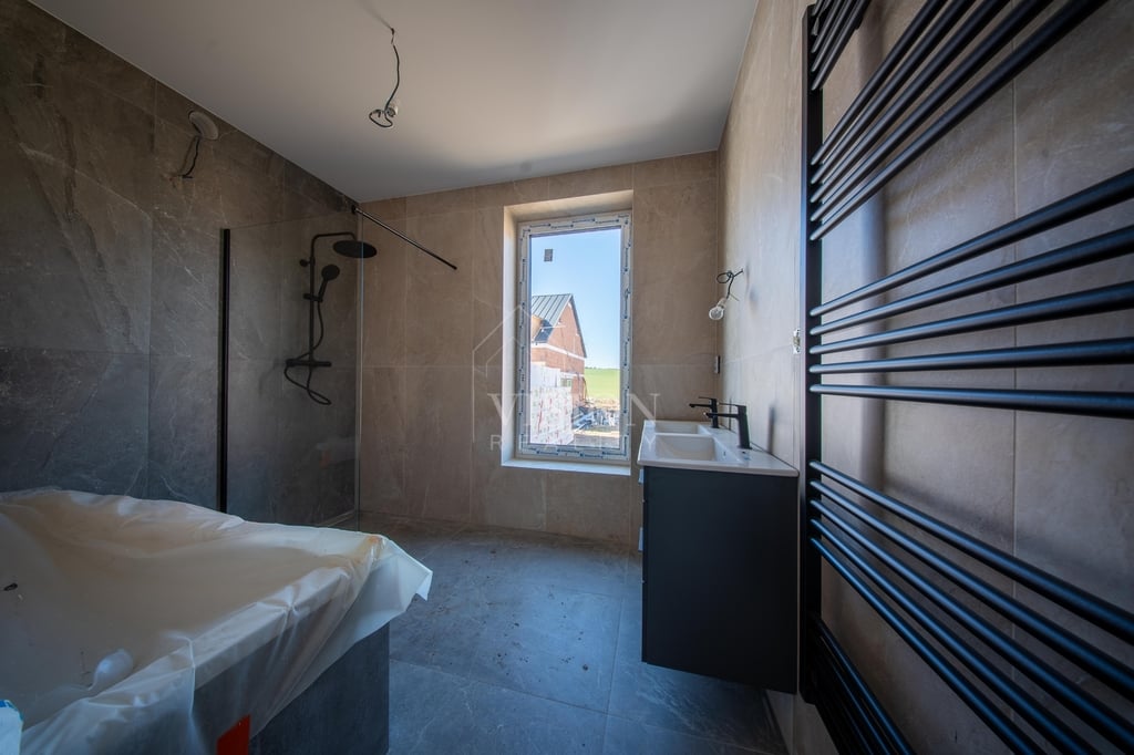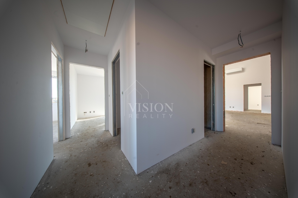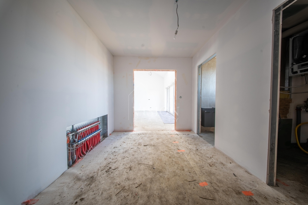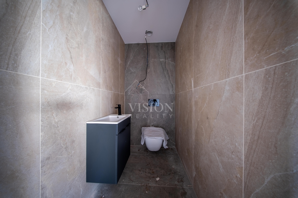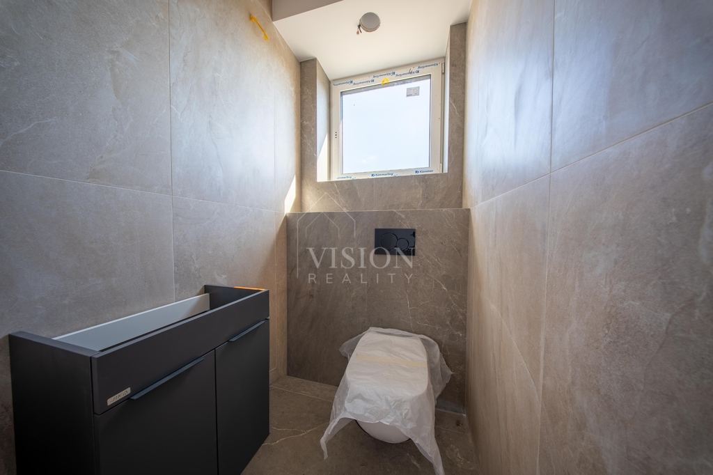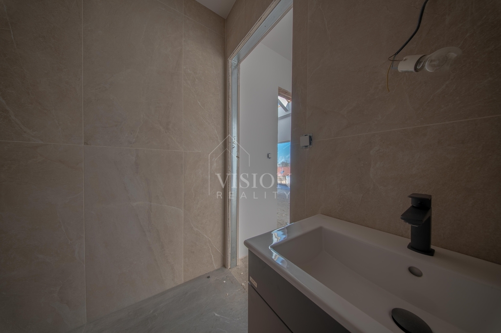 Dominantou domu je velkorysý obývací prostor s kuchyní, který je díky velkým oknům krásně prosvětlený a přirozeně propojený s terasou a zahradou. Pro naprostý komfort je zde ložnice s vlastní koupelnou a šatnou. Dále jsou zde dva samostatné pokoje, které mají taktéž každý svou šatnu.V domě nechybí ani pracovna a další velká koupelna rovněž s luxusní španělskou keramikou s nadčasovým designem. Pro praktičnost domu jsou zde další dvě samostatné toalety a technická místnost.