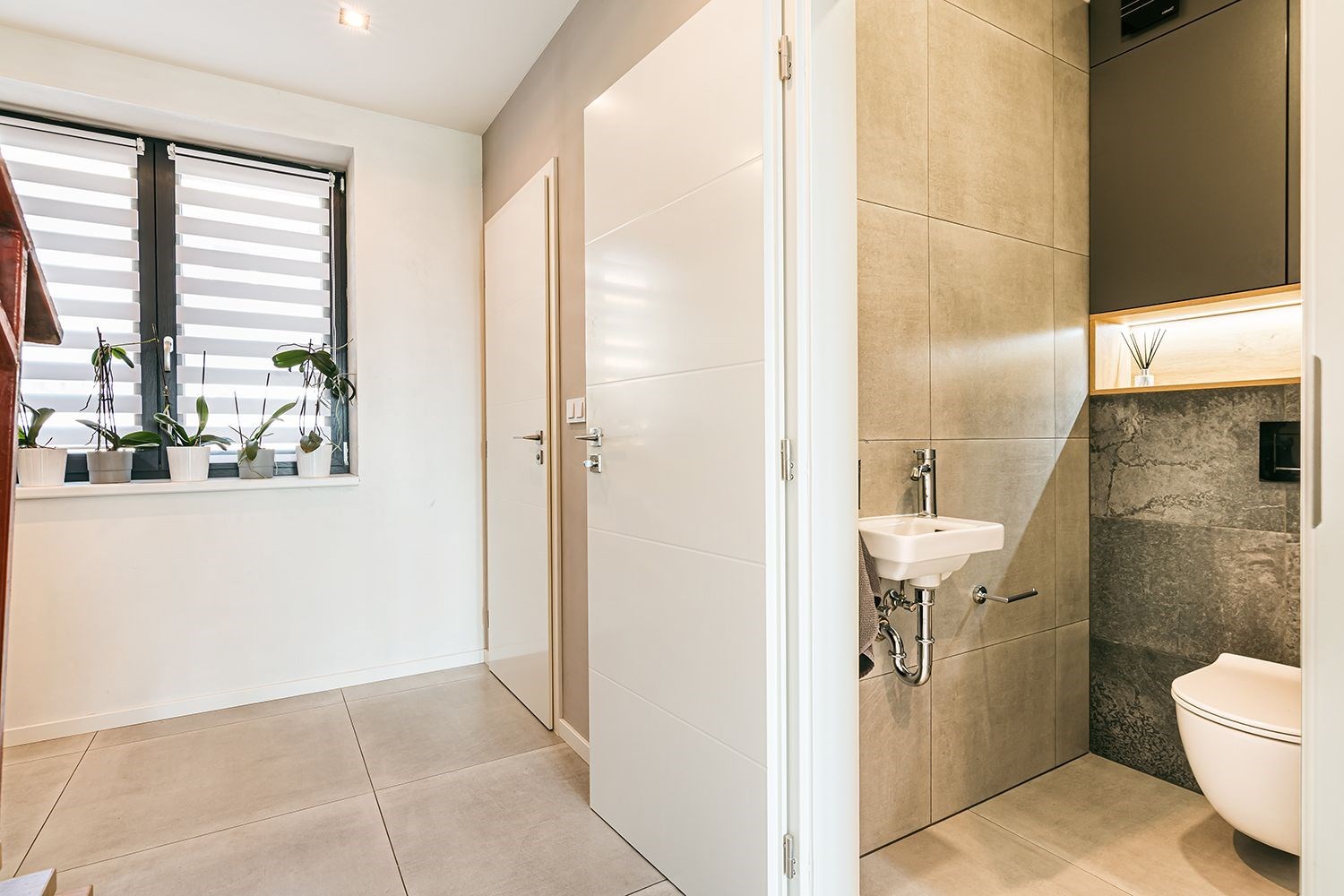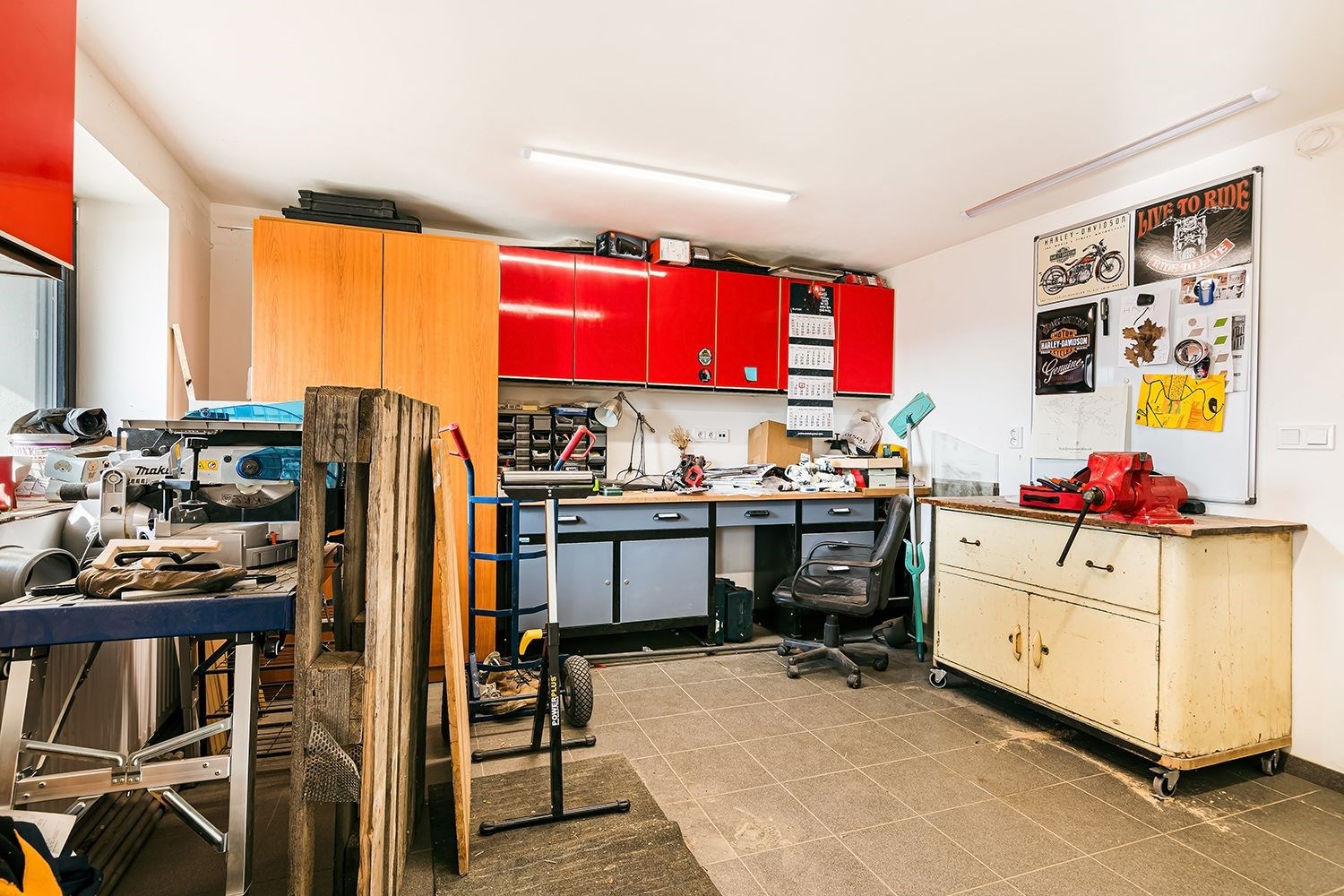 První nadzemní podlaží slouží jako praktické technické zázemí domu. Najdete zde předsíň s úložným prostorem, sklad, spíž, kotelnu, dílnu, WC a garáž. Toto podlaží vám umožní mít domácnost perfektně organizovanou.