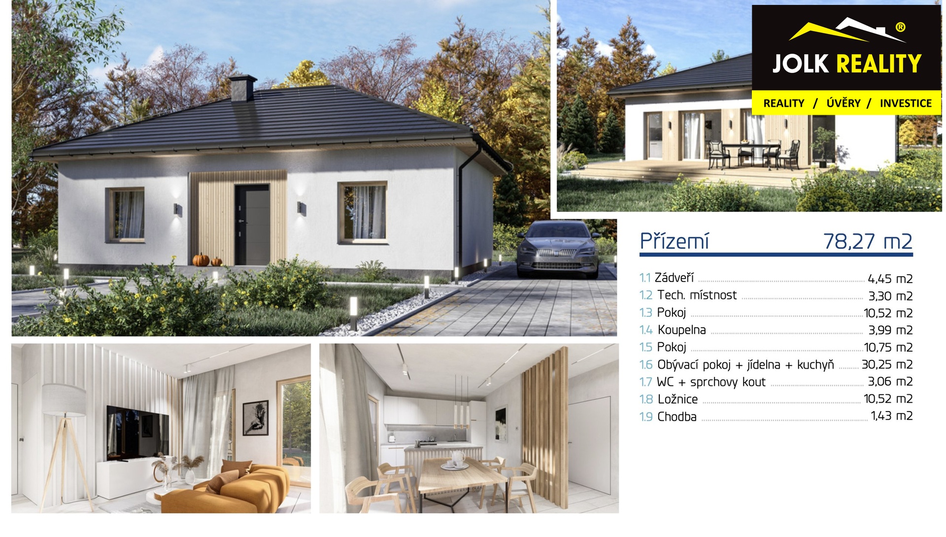 Dům se nabízí k výstavbě a k prodeji bez pozemku. Vybrat si ale můžete pozemky, které jsou samostatně k prodeji, v tomto případě s výměrou 604 m2 až 975 m2 a jsou dle územního plánu určeny k výstavbě rodinných domů. Pozemky jsou již ZKOLAUDOVANÉ, přičemž veškeré sítě jsou připraveny pro budoucí výstavbu rodinného domu a to na každém pozemku (voda, kanalizace, elektřina). Tento či jiný typ rodinného domu Vám můžeme postavit i v jiné lokalitě, pokud si například vyberete jiný pozemek v jiném region. Budoucí majitelé stavebních pozemků vyrůstajících v okrajové části obce, klidné lokalitě obklopené přírodou, zajisté přivítají blízkost mateřské školy, kulturního domu i sportovního areálu. Vlastní pozemek, rodinný dům, terasa a zahrada, to vše je prostor, který je možno si upravit podle svých představ. Pro více informací kontaktujte makléře, vizualizace v nabídce je pouze ilustrativní.