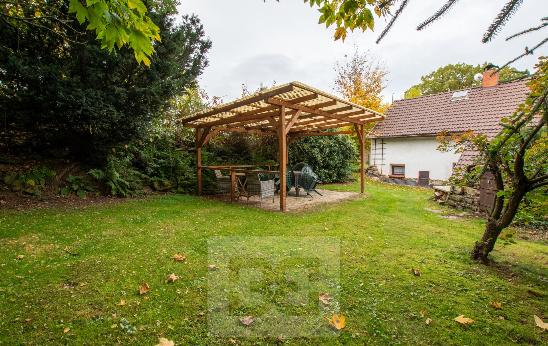 Zahrada nabízí dostatek soukromí i prostoru pro volnočasové aktivity – k dispozici je altán s posezením a grilem, dětská prolézačka, trampolína, zahradní nářadí a prostorná kůlna pro uskladnění dalších věcí.