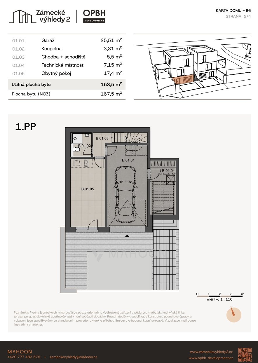 Nabízíme k prodeji moderní bytovou jednotku č. B6 o dispozici 5+KK a podlahové ploše 153,5 m² se zahradou 232 m², která se nachází v projektu Zámecké výhledy II v obci Úholičky.