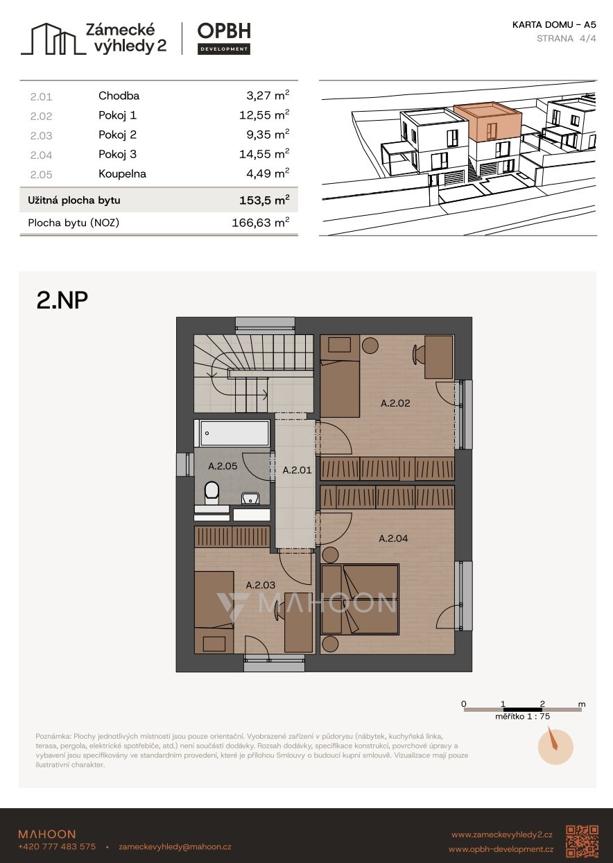 Nabízíme k prodeji moderní bytovou jednotku č. A5 o dispozici 5+KK a podlahové ploše 153,5 m² se zahradou 341 m², která se nachází v projektu Zámecké výhledy II v obci Úholičky.