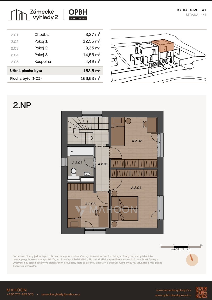 Nabízíme k prodeji moderní bytovou jednotku č. A1 o dispozici 5+KK a podlahové ploše 153,5 m² se zahradou 348 m², která se nachází v projektu Zámecké výhledy II v obci Úholičky.
