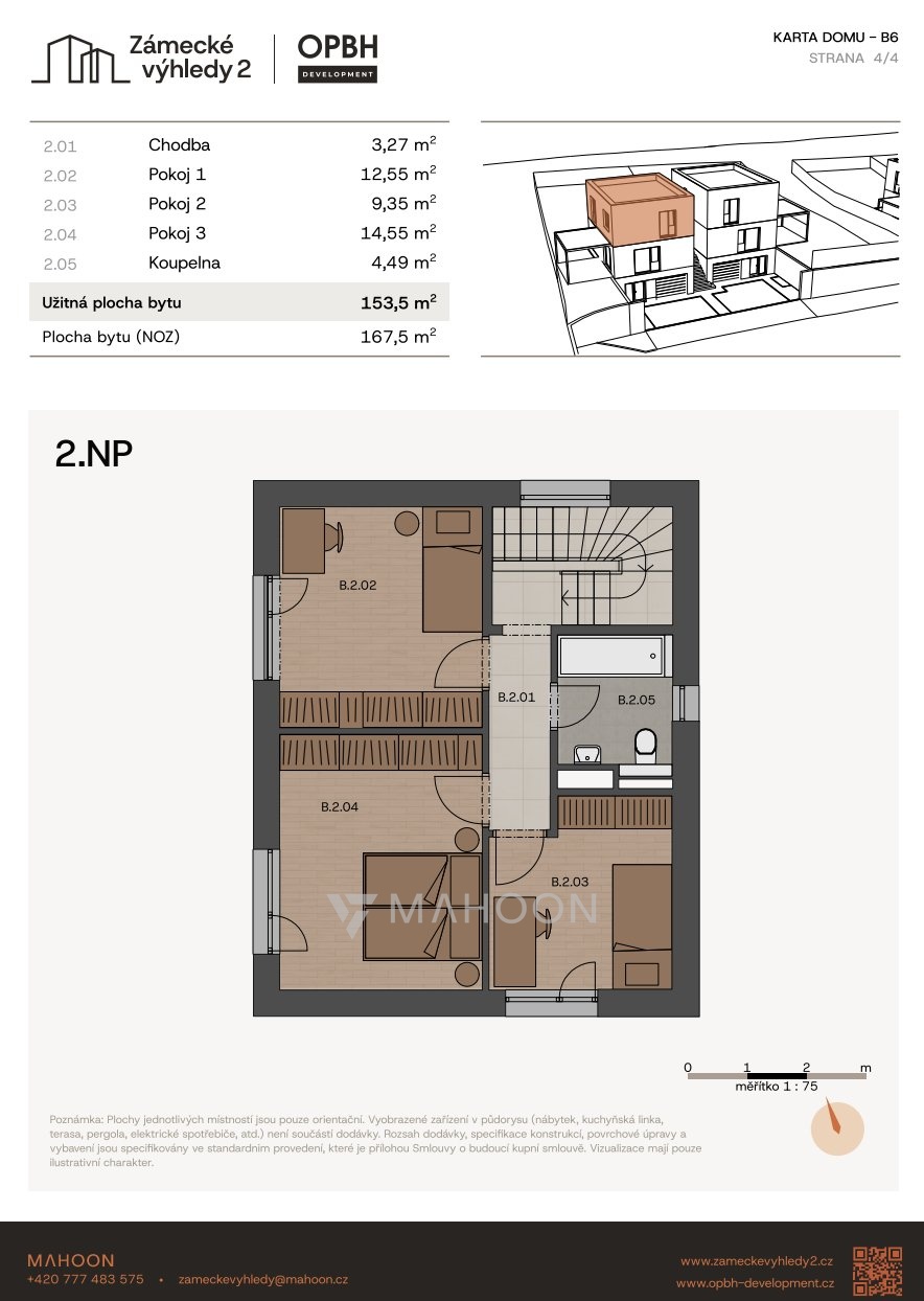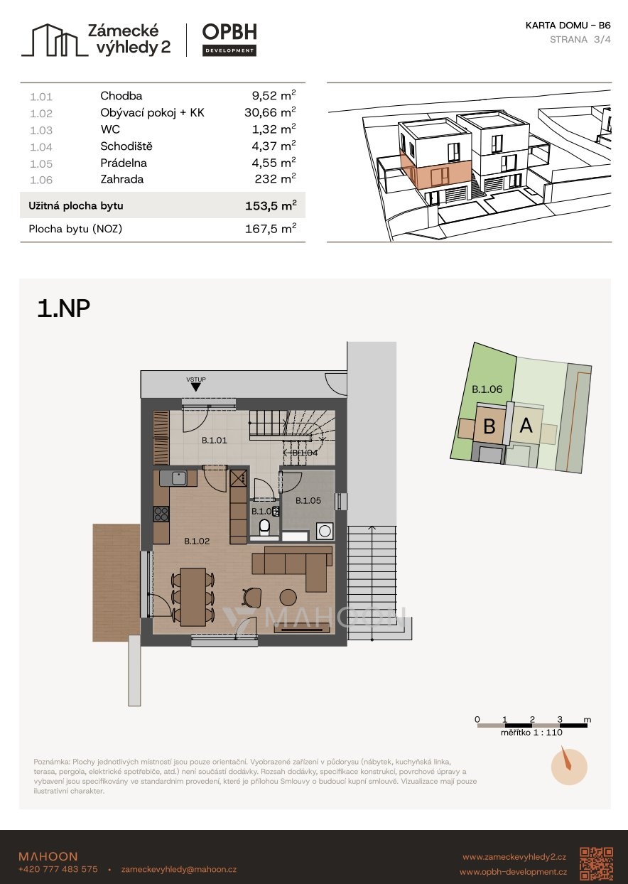 Nabízíme k prodeji moderní bytovou jednotku č. B6 o dispozici 5+KK a podlahové ploše 153,5 m² se zahradou 232 m², která se nachází v projektu Zámecké výhledy II v obci Úholičky.