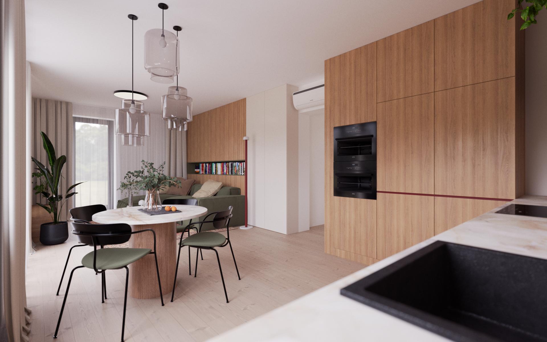 Byt je vybaven ve vysokém standardu dřevěné podlahy, příprava na chytrou domácnost a další nadstandardní prvky zajišťují komfortní a bezstarostné bydlení.