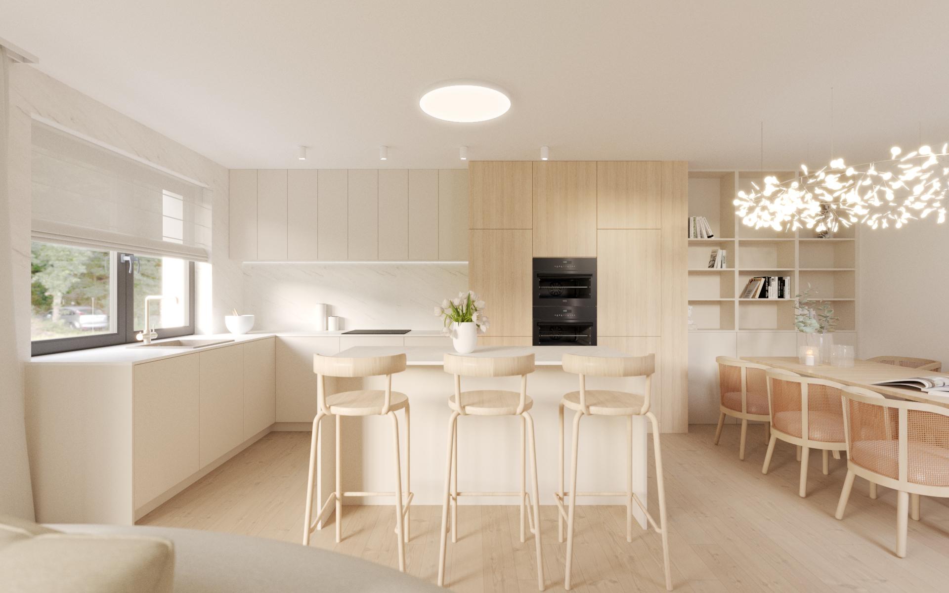 V patře se nachází tři ložnice, velkorysá koupelna s vanou i sprchovým koutem, samostatné WC a praktická šatna. Vysoký standard vybavení obnáší dřevěné podlahy, přípravu na chytrou domácnost a další prémiové prvky, které zajišťují pohodlné a bezstarostné bydlení.