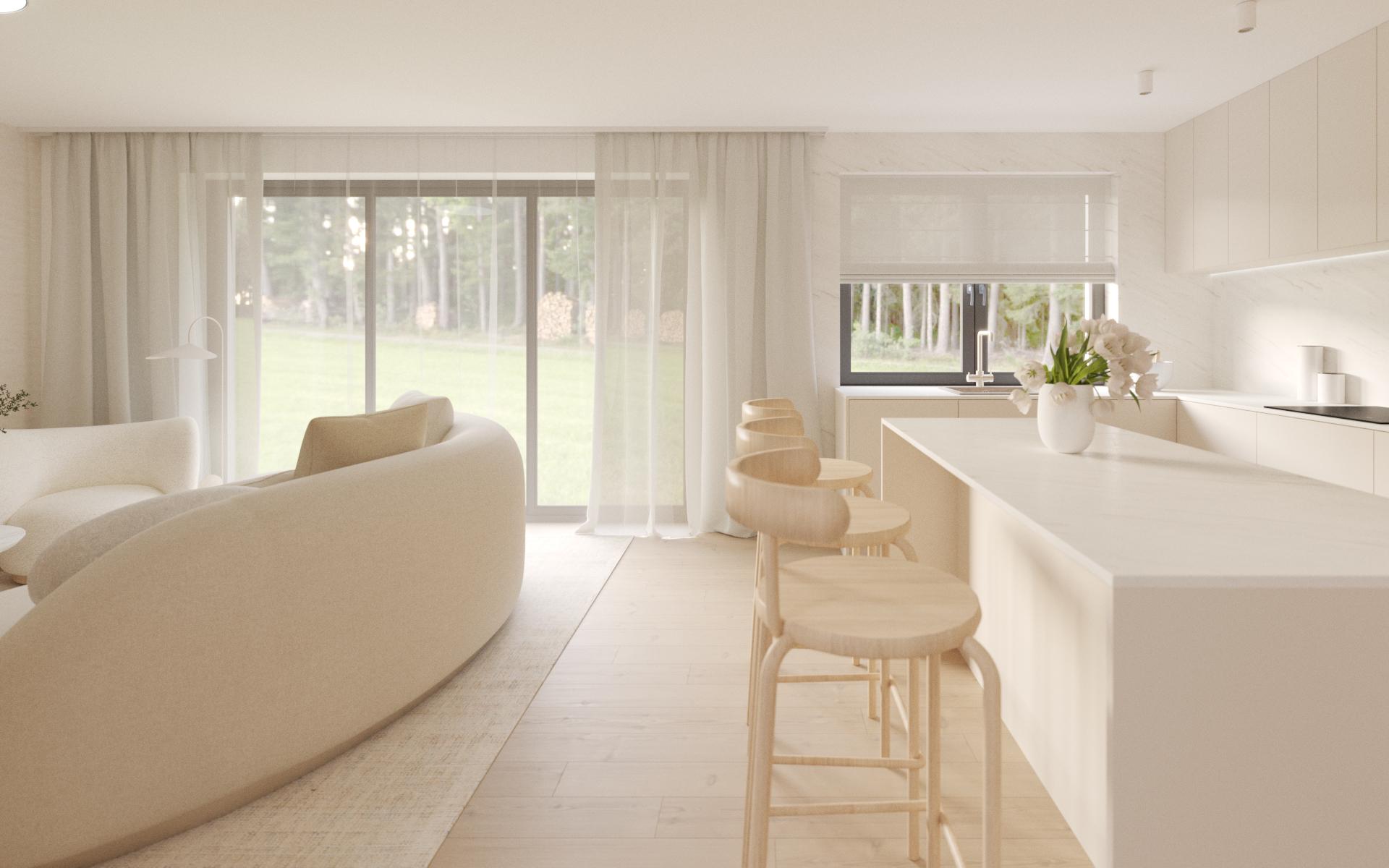 Promyšlená dispozice pro maximální comfort znamená, že v přízemí vás přivítá útulný pokoj ideální jako pracovna nebo pokoj pro hosty, samostatná toaleta, technická místnost a především prostorný obývací pokoj s přípravou na kuchyňský kout. Ten plynule navazuje na soukromou zahradu - perfektní místo pro relaxaci i rodinné chvíle.