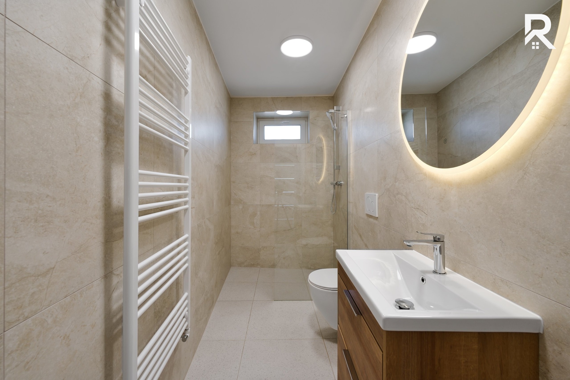 Samotný dům o dispozici 5+kk včetně šatny prošel kompletní a důkladnou rekonstrukcí, při které byly realizovány veškeré nové rozvody plynu, elektřiny i vody, stejně jako nová střecha s PVC fólií. Jedná se o cihlovou stavbu, která je nově zateplena (16 cm), disponuje novým hromosvodem včetně revize a plastovými okny s izolačními trojskly. Dům je připraven i na moderní technologie – kolem domu jsou vývody pro bezpečnostní kameru, připraven je rozvod pro internet, zvonek, elektromobil i budoucí instalaci fotovoltaické elektrárny. Vytápění celé nemovitosti lze pohodlně ovládat přes WiFi termostat, v každé místnosti jsou datové zásuvky pro internet a komfort podtrhuje kvalitní klik vinylová podlaha. Samozřejmostí je také nový kotel a kompletně nové rozvody topení.