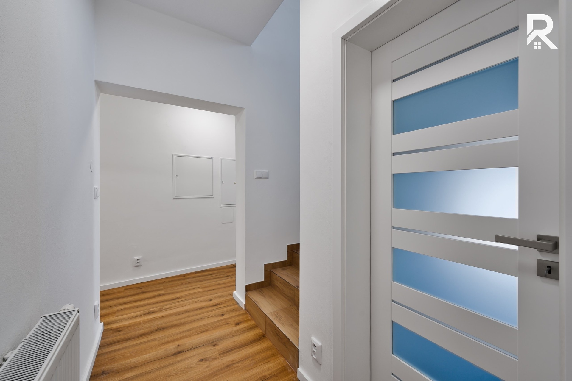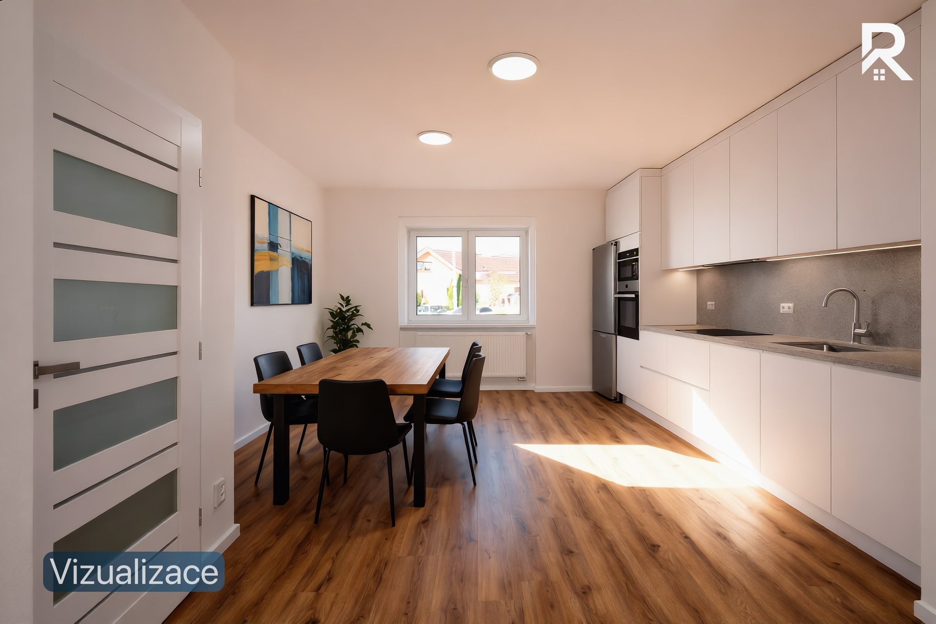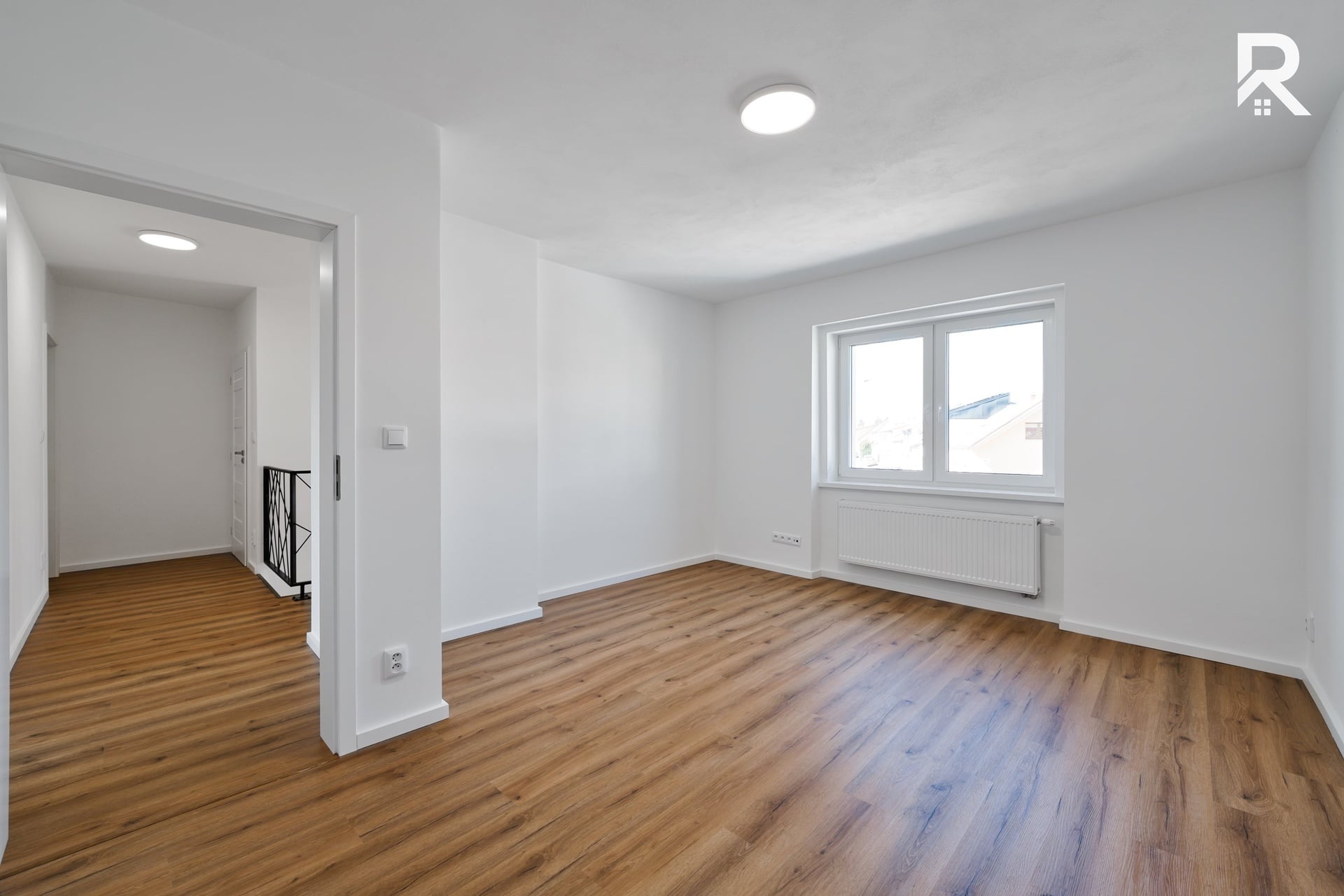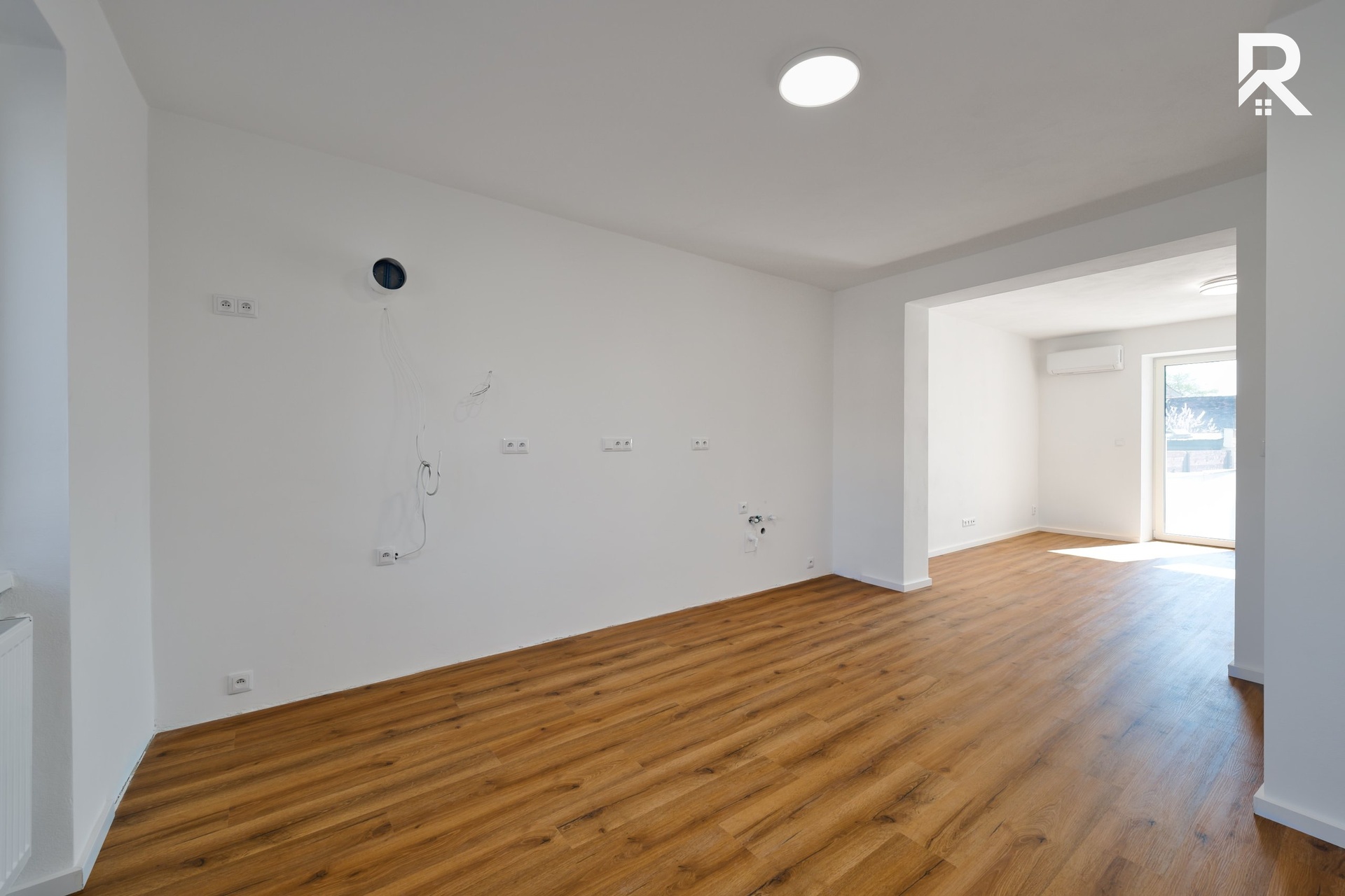 Do světa nemovitostí k prodeji míří tento kompletně zrekonstruovaný řadový rodinný domek, který se nachází na adrese Sušilova v obci Újezd u Brna. Neznáte Újezd u Brna? Tato obec leží přibližně 15 km od Brna a nabízí ideální kombinaci klidného bydlení s výbornou dostupností do města. Do centra Brna se pohodlně dostanete vlakem z místní zastávky zhruba za 20 minut, k dispozici je i pravidelné autobusové spojení a autem jste v Brně přibližně za 15–20 minut. Obec disponuje kompletní občanskou vybaveností – najdete zde mateřskou i základní školu, obchody, restaurace, lékaře i sportovní zázemí. Okolí zároveň nabízí dostatek zeleně, cyklostezek a možností pro aktivní odpočinek.