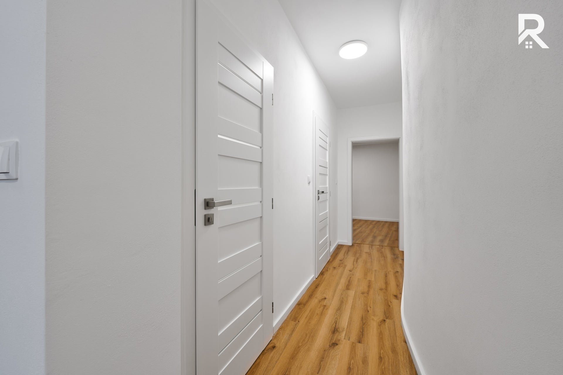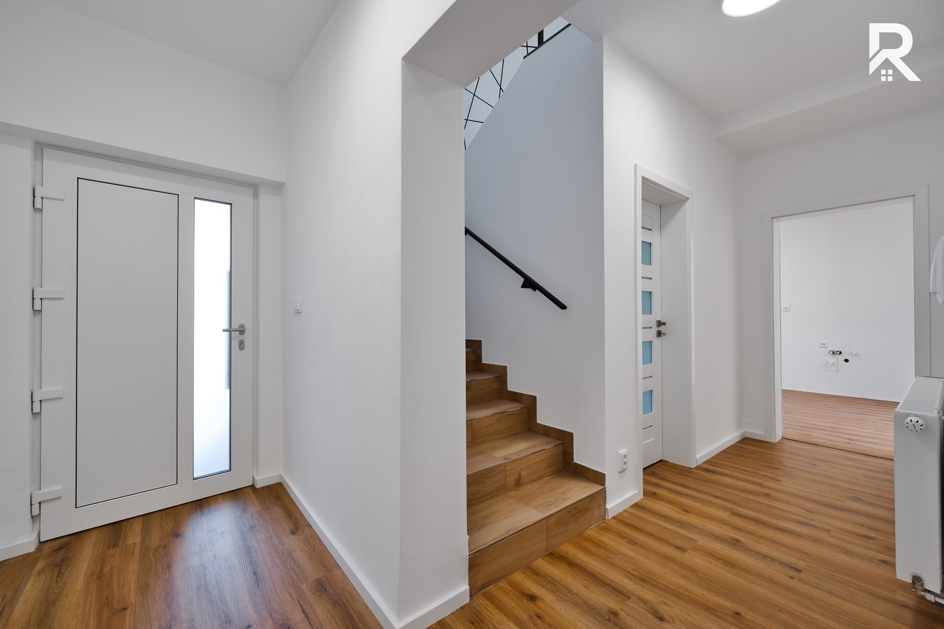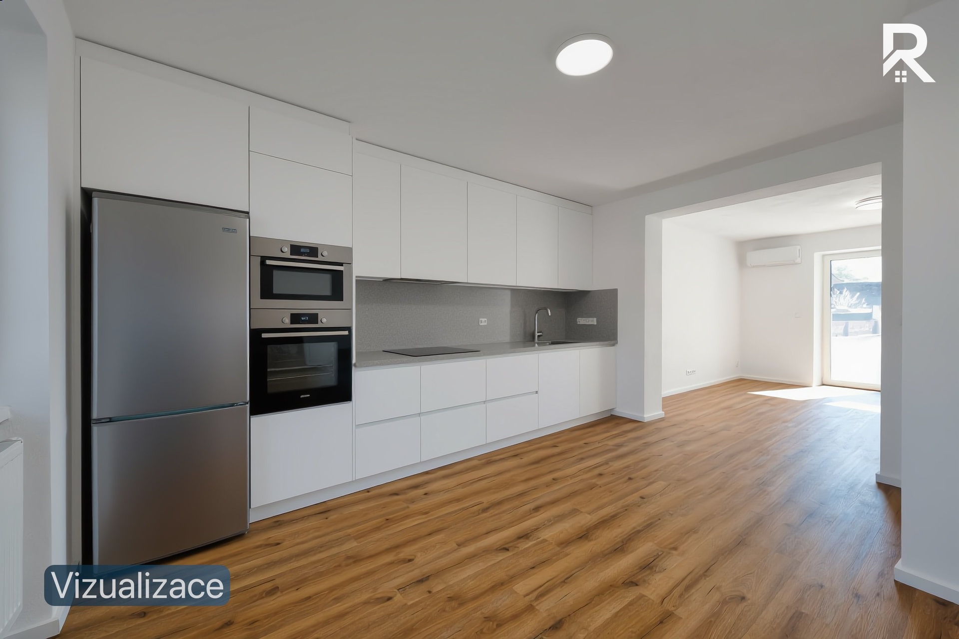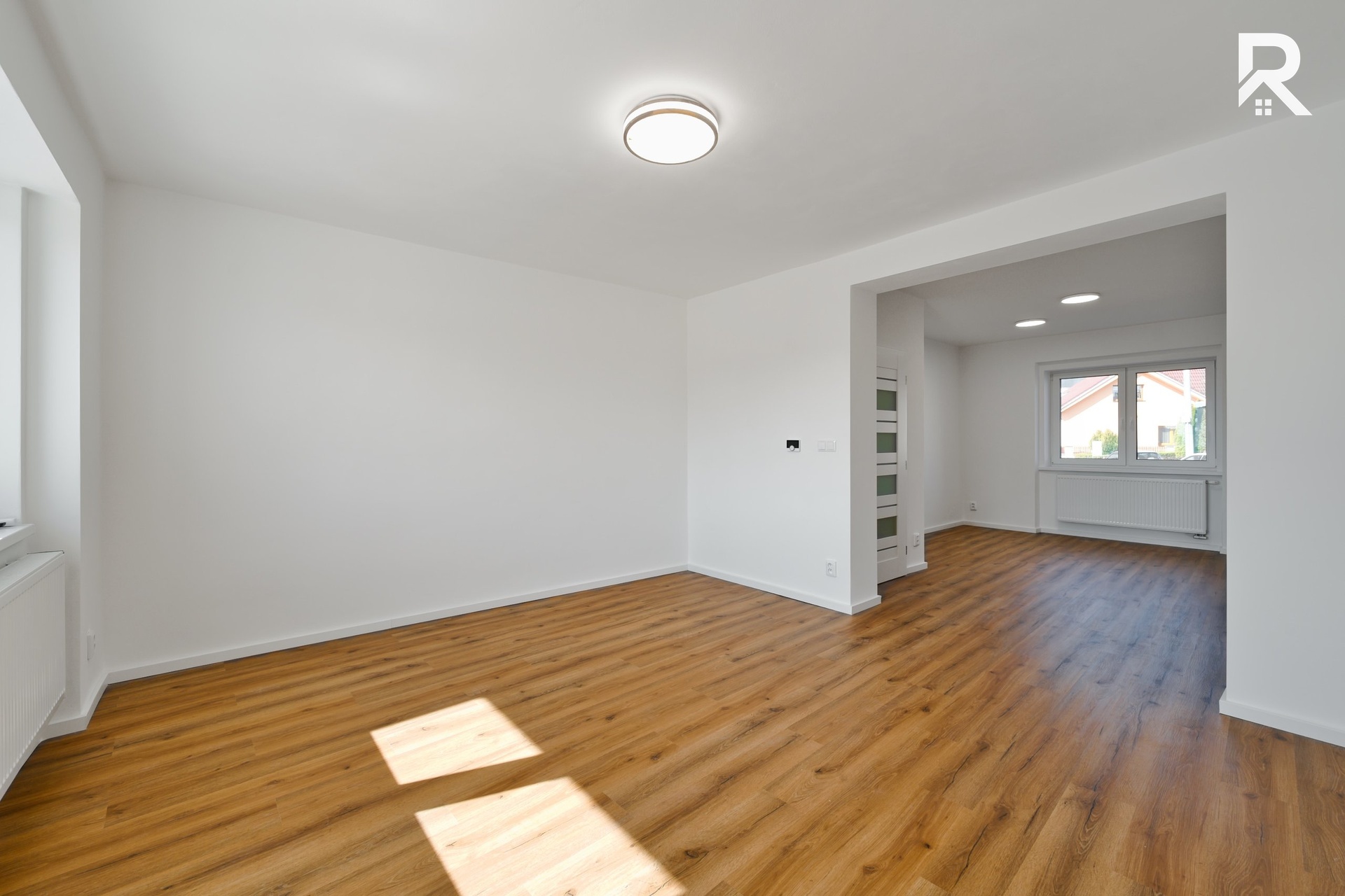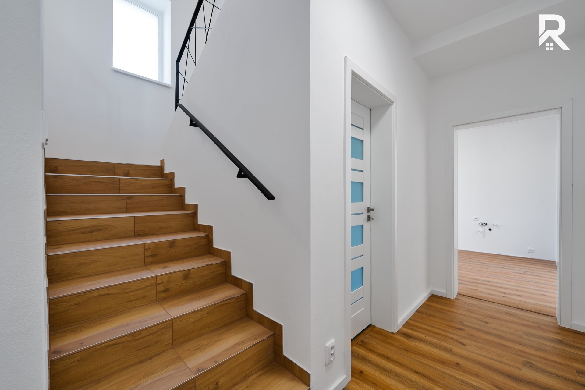 Do světa nemovitostí k prodeji míří tento kompletně zrekonstruovaný řadový rodinný domek, který se nachází na adrese Sušilova v obci Újezd u Brna. Neznáte Újezd u Brna? Tato obec leží přibližně 15 km od Brna a nabízí ideální kombinaci klidného bydlení s výbornou dostupností do města. Do centra Brna se pohodlně dostanete vlakem z místní zastávky zhruba za 20 minut, k dispozici je i pravidelné autobusové spojení a autem jste v Brně přibližně za 15–20 minut. Obec disponuje kompletní občanskou vybaveností – najdete zde mateřskou i základní školu, obchody, restaurace, lékaře i sportovní zázemí. Okolí zároveň nabízí dostatek zeleně, cyklostezek a možností pro aktivní odpočinek.