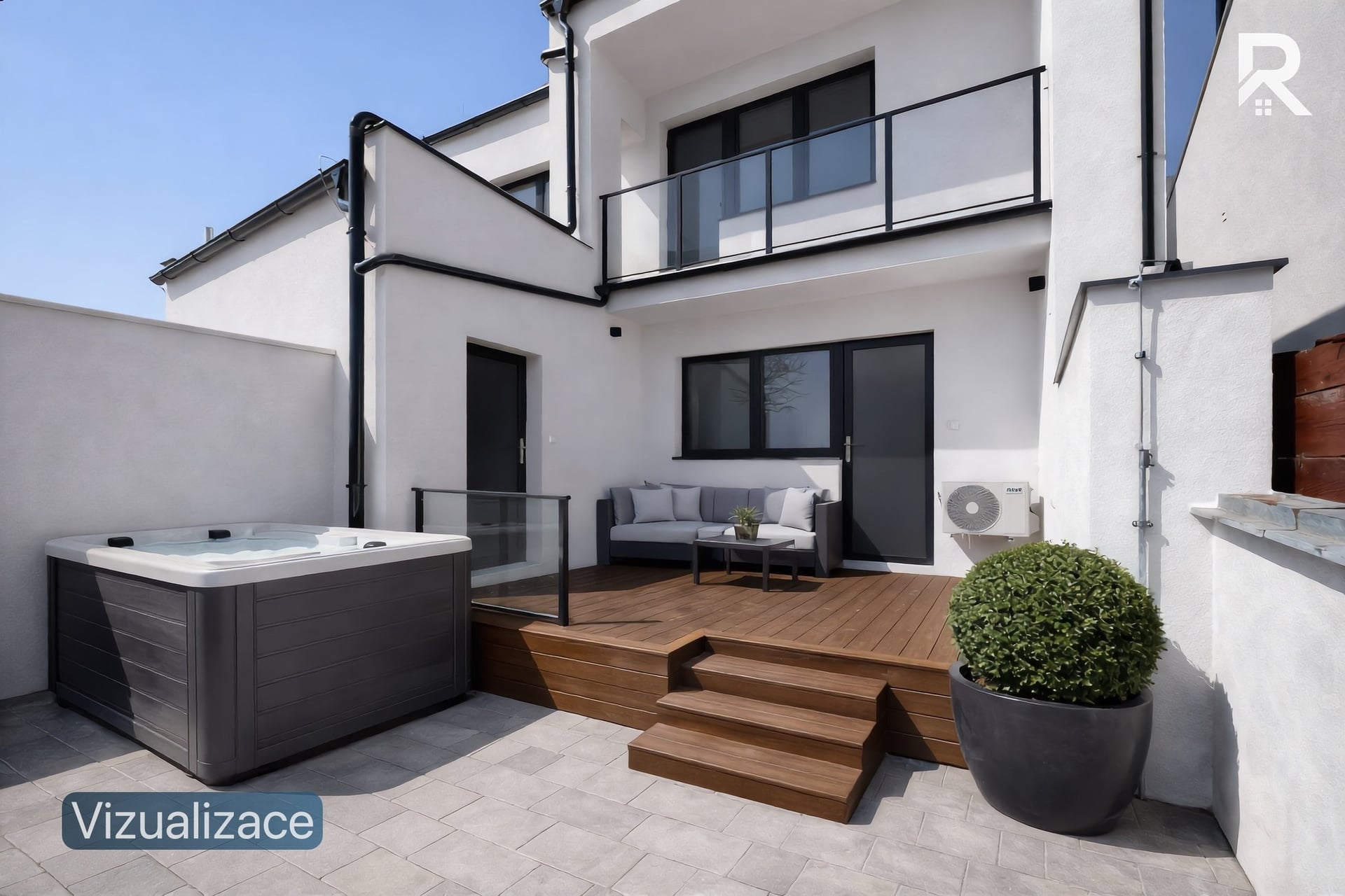 Nemovitost se prodává ve stavu před dokončením, což Vám dává ideální příležitost doladit finální podobu dle vlastního vkusu. V patře se nachází také prostorná terasa s již hotovou kvalitní hydroizolací, připravená k dokončení dlažby a zábradlí. Vnitřní část zahrady včetně přístavku je ponechána v původním stavu, přičemž Vám rádi pomůžeme s jejím dokončením dle připravených vizualizací. Součástí je také praktický nezámrzný ventil ve vnitřním traktu.