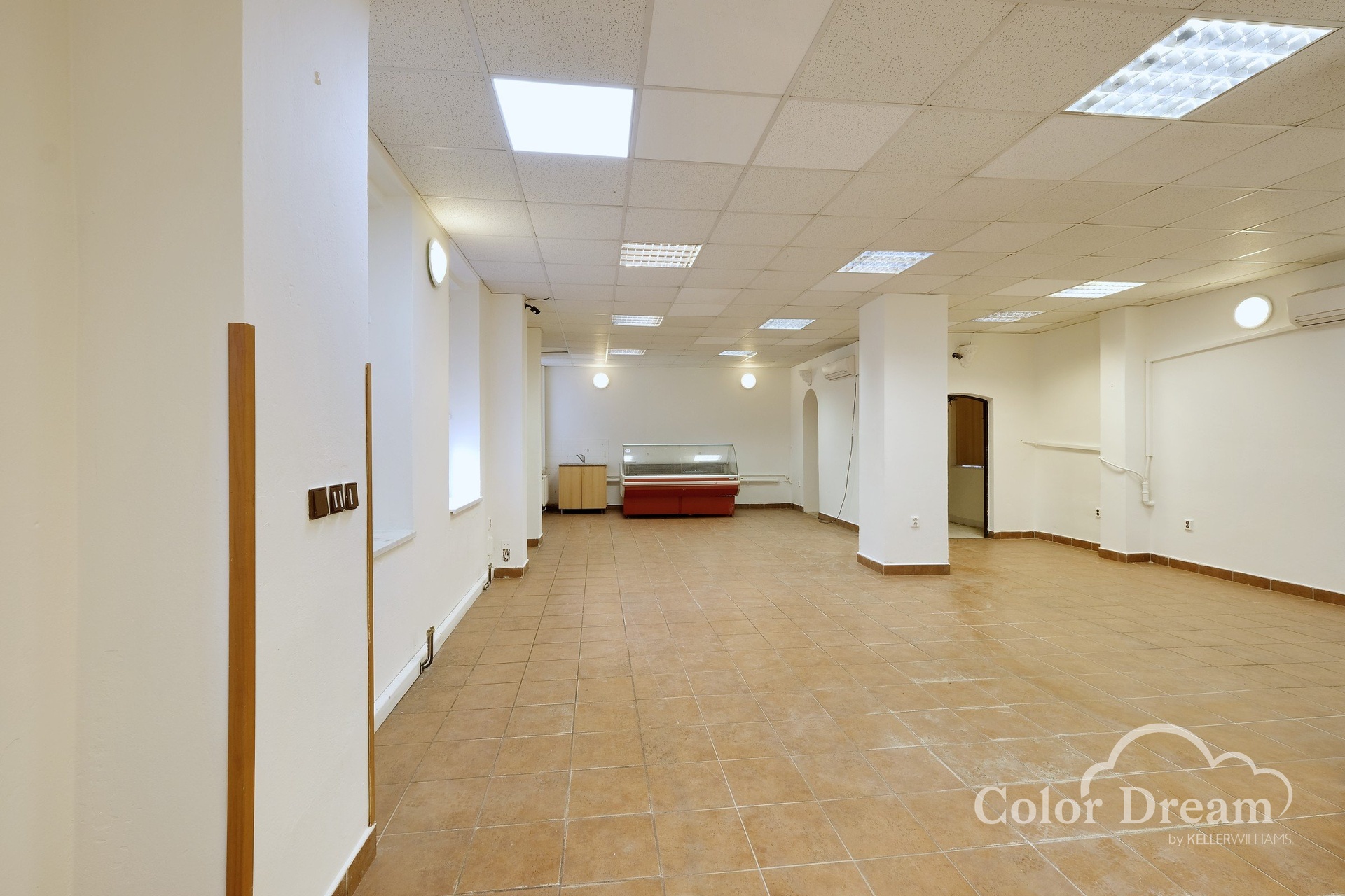Budova nabízí nejen samotný prostor pro prodej, ale i 2 sklady a sociální zázemí. Součástí vybavení jsou 2 klimatizační jednotky, plynový kotel, WC, umyvadlo a bojler na teplou vodu. Před domem je místo na zaparkování kol a možnost zaparkovat 3 auta.
