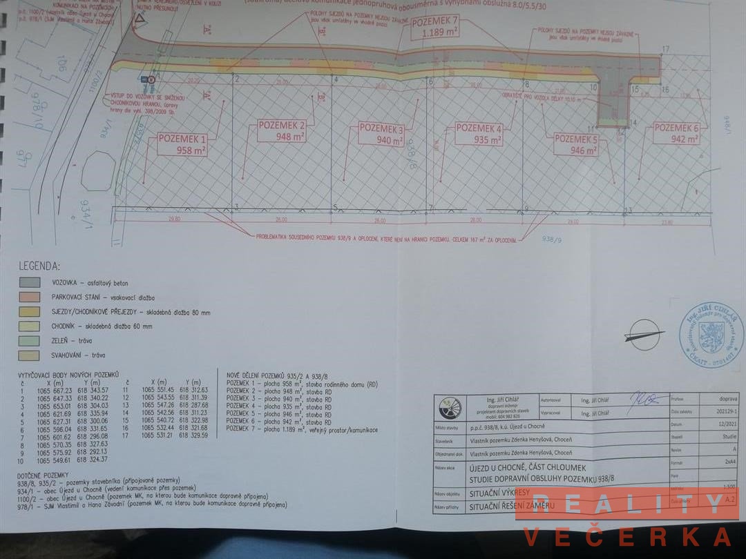 Hledáte pozemek jako investici, nebo pro stavbu rodinného domu?br /br /Peníze ztrácejí na hodnotě. Jednou z možností jak ztráty minimalizovat je vhodná investice do nemovitostí. br /br /Nabízíme k prodeji celkem šest pozemků určených k zástavbě rodinnými domy v katastrálním území obce Újezd u Chocně, část Chloumek, o ploše pozemků od 907 až po 1001 m2, jde o p.č.: p.č. 935/2, 938/10, 938/11, 938/12, 938/13 a 938/14, které jsou územním plánem pro Újezd u Chocně určeny k zástavbě rodinnými domy. Pozemky jsou zapsány v katastru nemovitostí spolu s příjezdovou komunikací. Všech šest pozemků je určeno k prodeji, koupit si je lze jednotlivě. Cena za jednotlivé pozemky je totožná a to 1.180.000,- Kč. Koupí pozemku získá nový majitel také spoluvlastnický podíl na příjezdové komunikaci. br /br /V textové části územního plánu je tato stavební plocha uvedena pod označením P1-CH - hlavní využití pro bydlení v rodinných domech (bydlení smíšené obytné venkovské). Jde o samostatně stojící rodinné domy se sedlovou střechou o jednom nadzemním podlaží a obytném podkroví.br /br /Pozemky se nachází ve střední části obce, jsou téměř obdelníkové, mírně svažité jižním směrem. Vjezd k pozemkům je z obecní asfaltové komunikace. Inženýrské sítě a to elektřina, vodovod, plyn jsou v dosahu pozemků. Likvidace odpadních vod bude řešena vlastní čističkou. Je na budoucích vlastnících pozemků, aby si na své náklady vybudovali komunikaci a zavedli sítě. Studie obslužné komunikace podél parcel je k dispozici, lze se zhotovitelem pokračovat ve vypracování projektu. V Chloumku je především nová zástavba samostatně stojících rodinných domů. Jedná se o klidnou a tichou lokalitu, bez negativních vlivů. Újezd je vzdálený 2 km, Choceň je vzdálená necelých 5 km. V těchto obcích se nachází veškerá občanská vybavenost. Ke koupi pozemků lze využít bankovní financování. K ručení za úvěr lze využít kupované pozemky. Náš finanční specialista spolupracuje se všemi bankami. Pozemky lze využít také jako vhodnou investici. Další informace získáte u makléře.