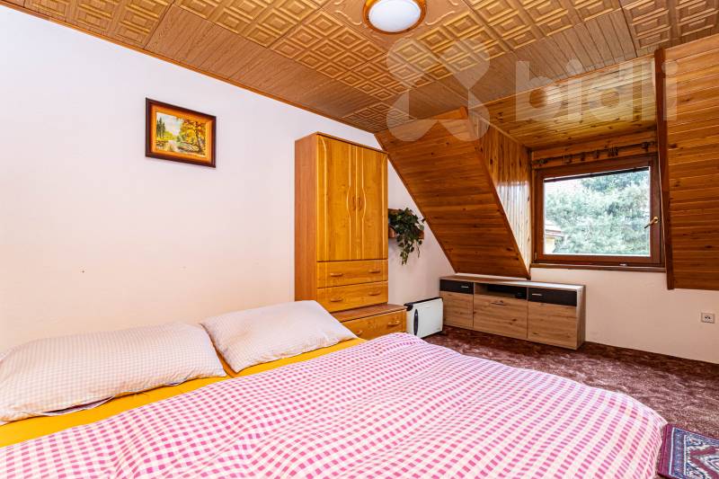 V exkluzivním zastoupení si Vám dovolujeme představit rekreační dům k celoročnímu bydlení, po částečné rekonstrukci, který je umístěn na vlastním poze mku o výměře 419 m2, je podsklepen a nachází se v klidné části obce Újezd u Svatého Kříže. Do domu je přivedena elektřina, voda a veřejná kanalizace. Vytápění domu je řešeno krbovými kamny na tuhá paliva a elektrickými přímotopy, zdrojem teplé vody je elektrický bojler. Na pozemku se nachází dílna a garáž pro jedno auto. Dům je posazen do pěkné zahrady, která je předurčena k vybudování bazénu, skleníku či pergoly pro posezení s přáteli nebo jen k velkým záhonům na pěstování zeleniny a výsadbě ovocných stromů. Újezd u Svatého Kříže je obec v okrese Rokycany v Plzeňském kraji, nacházející se necelé 3 km od města Radnice a cca 13 km od města Rokycany, kde najdete veškerou občanskou vybavenost. V obci se nachází Obecní úřad, pošta, prodejna potravin COOP, restaurace, sportoviště, koupaliště a dopravu zajišťuje autobusové spojení.