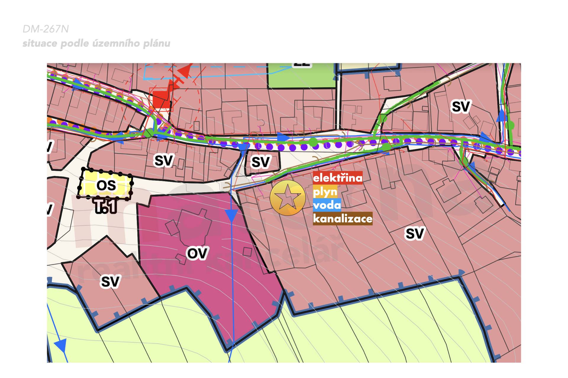 Občanská vybavenost:Škola, Školka, Supermarket, Kompletní síť obchodů a služeb