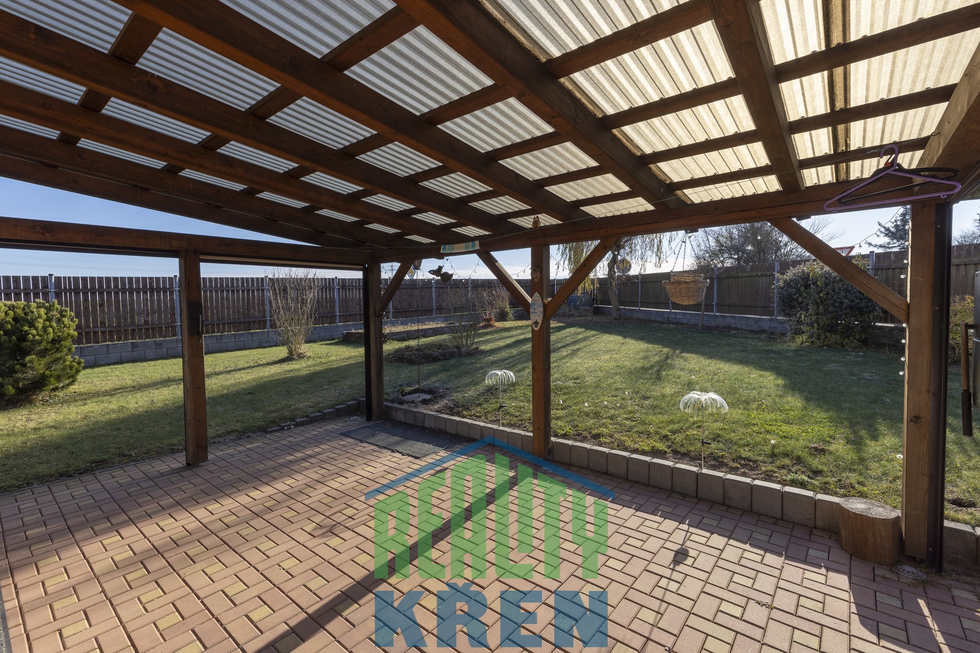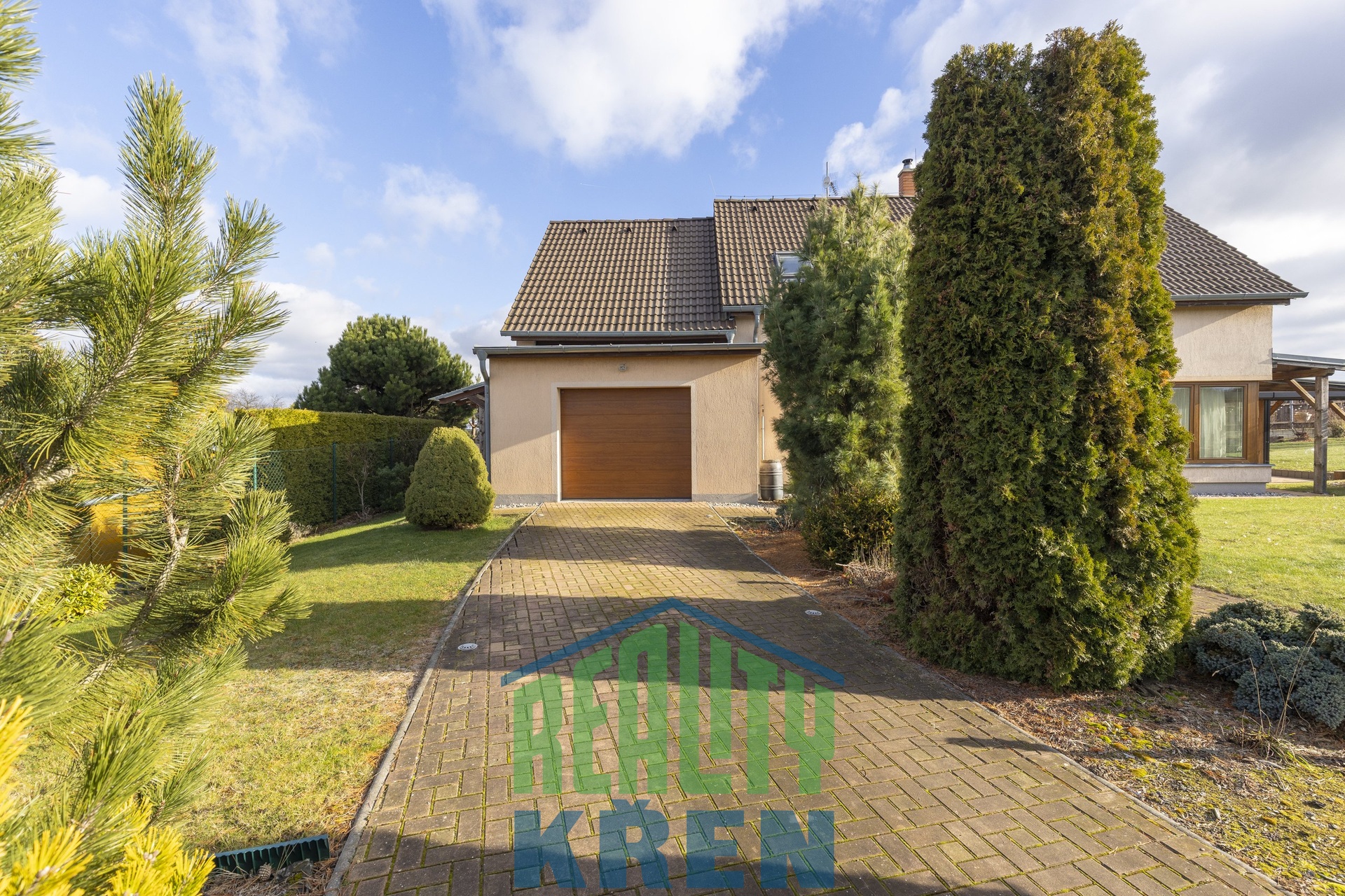 K domu náleží garáž 44 m2 pro dva osobní automobily (prostor pro parkování dalších vozidel na pozemku), nad garáží prostor pro vybudování další místnosti s propojením s vrchní ložnicí. Kolem domu udržovaná okrasná zahrada s pergolou s bočními hliníkovými roletami. Pro zalévání zahrady 4m3 nádrž na dešťovou vodu. Zahrada poskytuje naprosté soukromí.