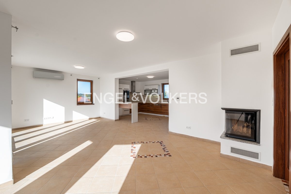 Rodinný dům s obytným podkrovím a garáží je situován v malebné a klidné okrajové části města Unhošť, v těsném sousedství rybníka Bulhar. Centrem domu je velkorysý obývací pokoj s krbem, který díky francouzským dveřím plynule přechází na slunnou jižní terasu. Na obývací prostor navazuje jídelní kout a kuchyň, jež je elegantně oddělena snídaňovým pultem a vybavena moderní linkou s vestavěnými spotřebiči značky Whirlpool.