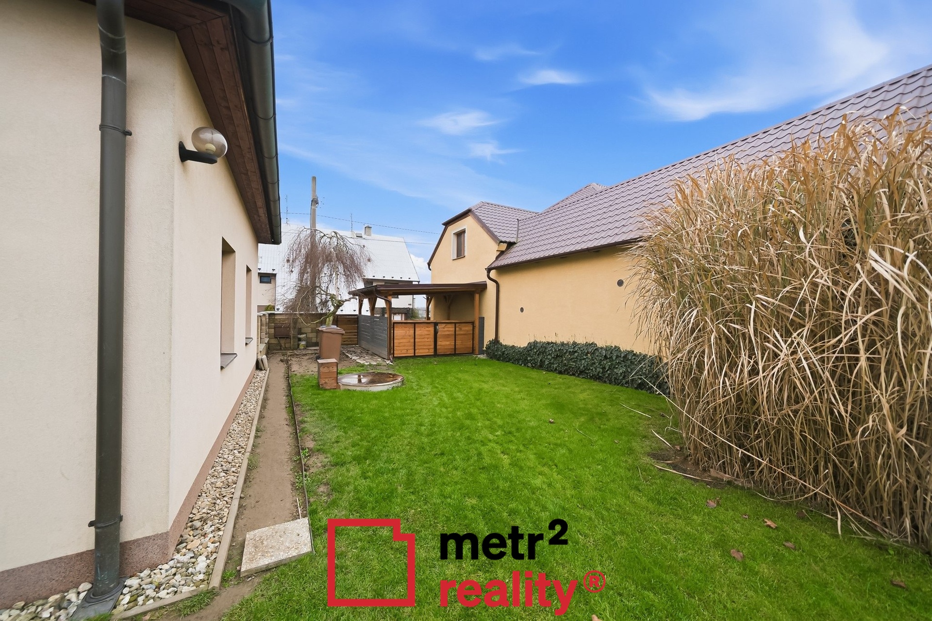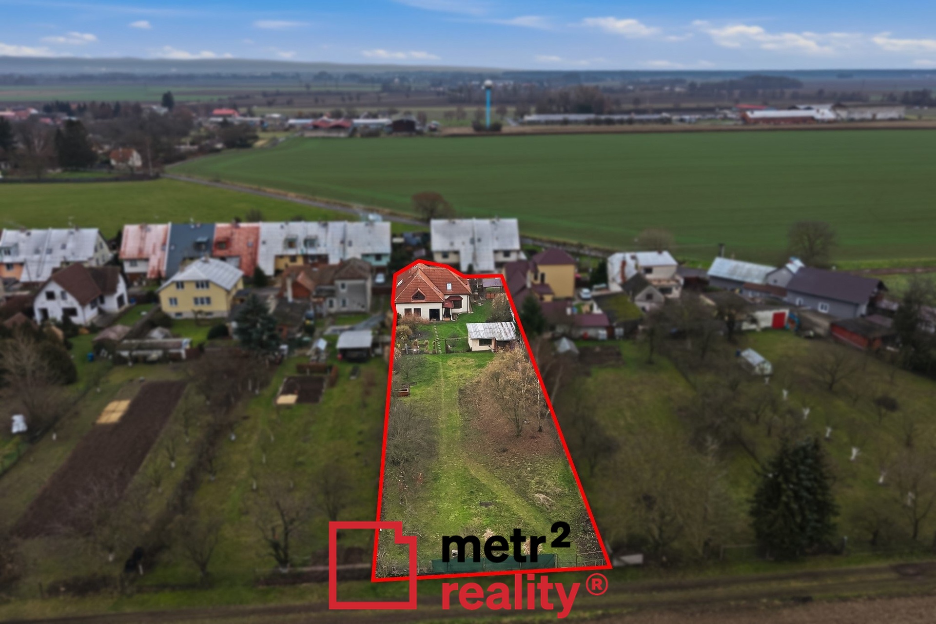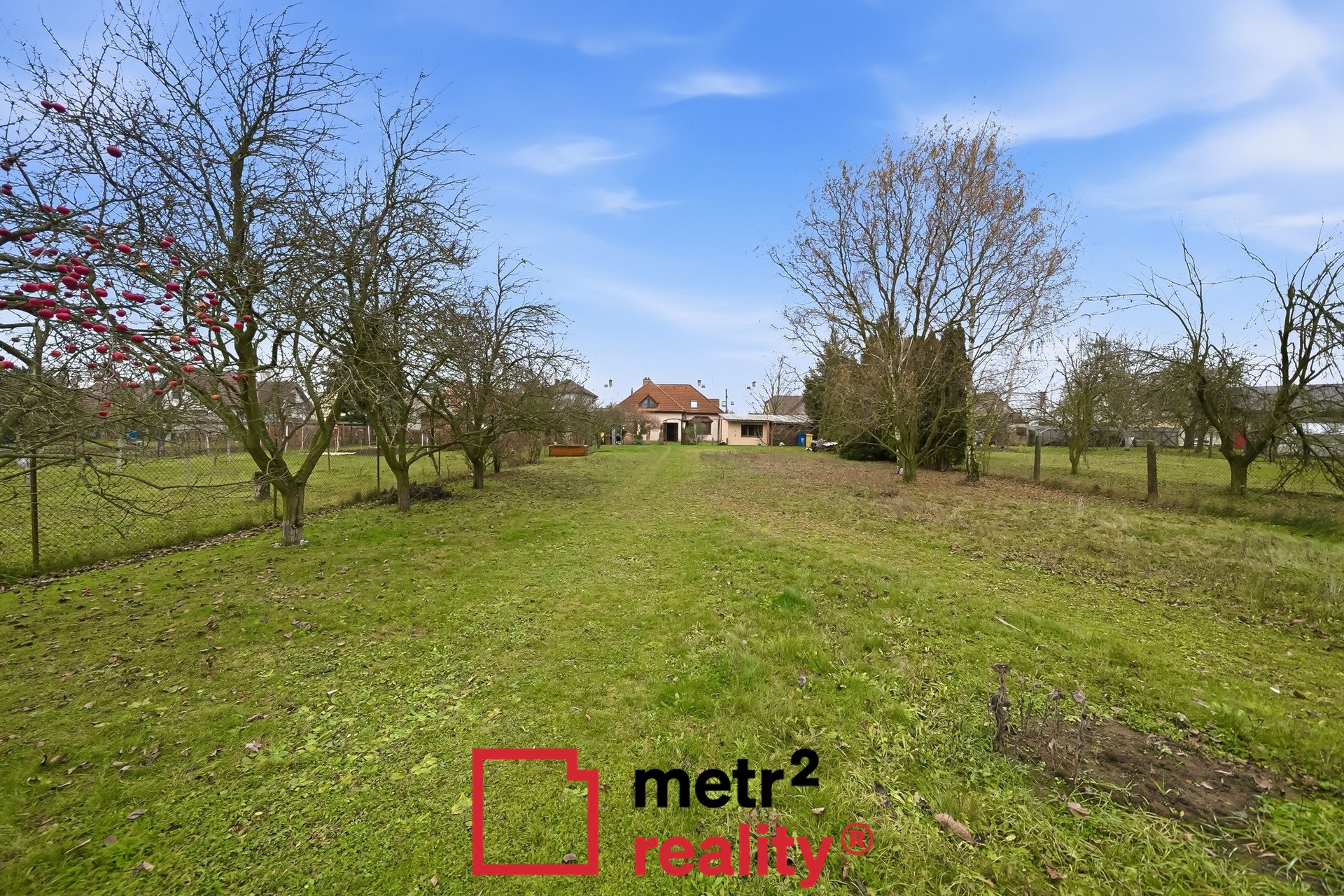 Obrovským bonusem je krásná zahrada o výměře 1339 m2, která je opticky rozdělena na dvě části, kdy část u domu je více okrasná a zadní část může sloužit jako užitková. Na zahradě je umístěna stavba, ve které se nachází kotec pro psa a zahradní domek na uložení zahradního nářadí či nábytku. Na pozemku se nachází několik krásných vzrostlých stromů, je kompletně oplocen a za zahradou se nahází už jen pole. Dům je totiž postaven na okraji obce v klidné ulici a nabízí svým obyvatelům maximální soukromí.