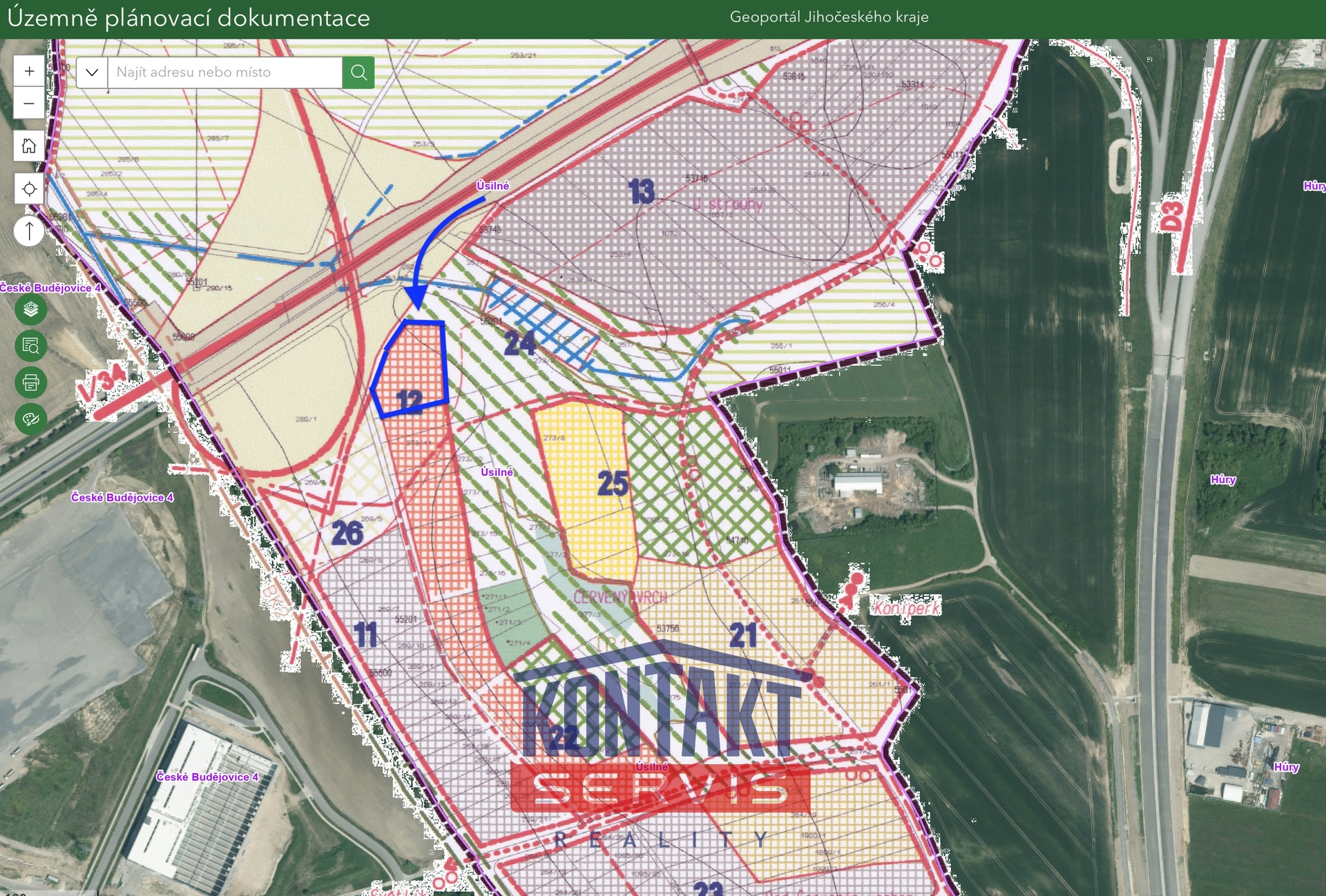 V zastoupení majitele nabízíme stavební pozemek pro komerční výstavbu v katastru Úsilné u Českých Budějovic